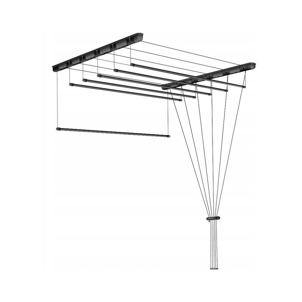 Hľadáte čierny závesný vešiak na bielizeň, ktorý vám ušetrí veľa miesta? Produkt, ktorý bude fungovať v interiéri aj exteriéri? Pozrite si náš stropný 6 radový sušiak bielizne. S naším stropným sušiakom môžete vytvoriť miesto na sušenie bielizne bez toho, aby zaberala príliš veľa miesta. Tento výrobok je možné inštalovať v miestnosti do výšky 3 metrov. Vhodné na sušenie bielizne v interiéri aj exteriéri. Má vynikajúcu odolnosť voči poveternostným vplyvom a vlhkosti, takže sa nemusíte obávať korózie.