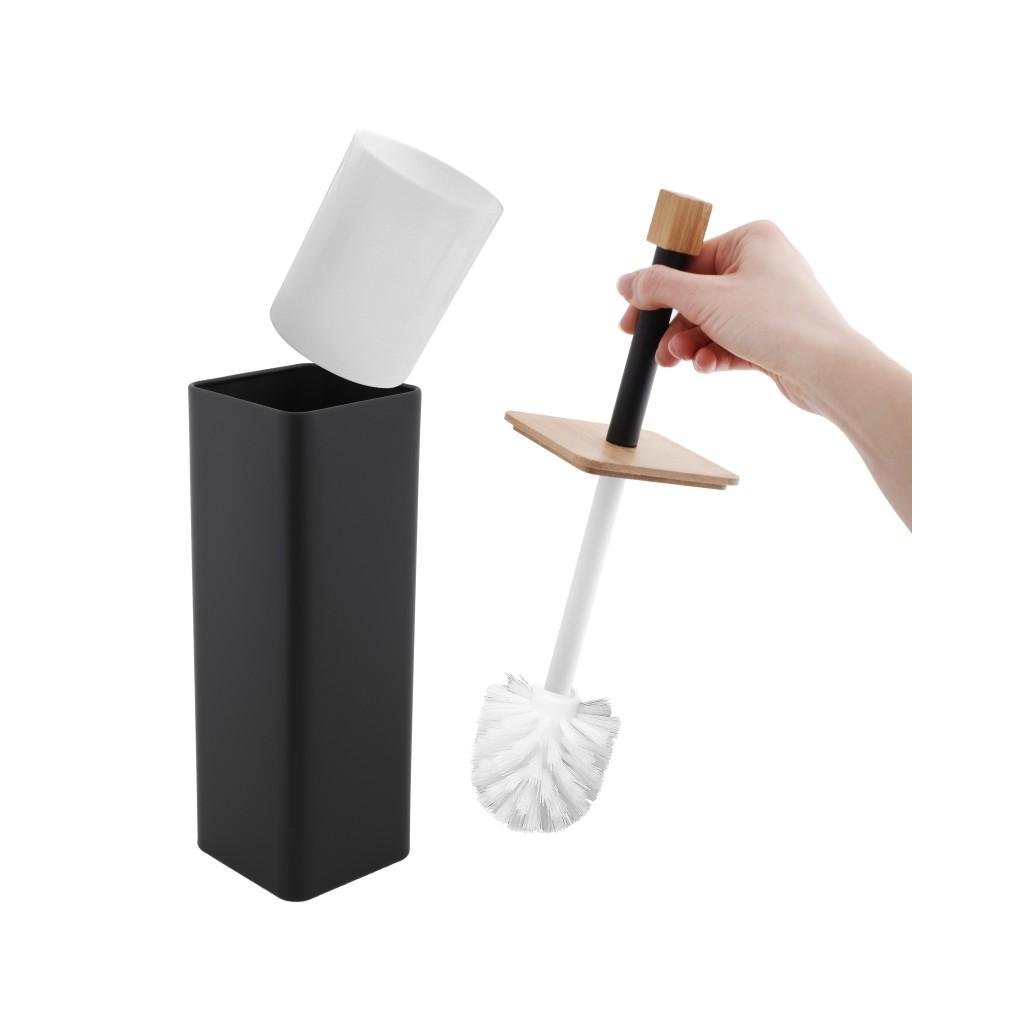Erga Amba, hranatá toaletná WC kefa na postavenie, čierna matná-prírodná hnedá, ERG-YKA-PD.AMBA-BLK