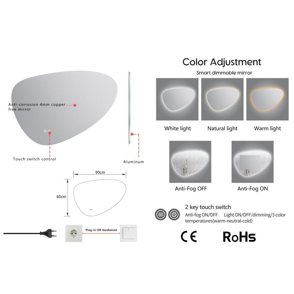 - Bezpečná a jednoduchá inštalácia: LED zrkadlo je možné namontovať veľmi ľahko. Podpora ovládania nástenného vypínača, môžete zapojiť priamo do zásuvky alebo odrezať zástrčku na pripojenie k káblu.