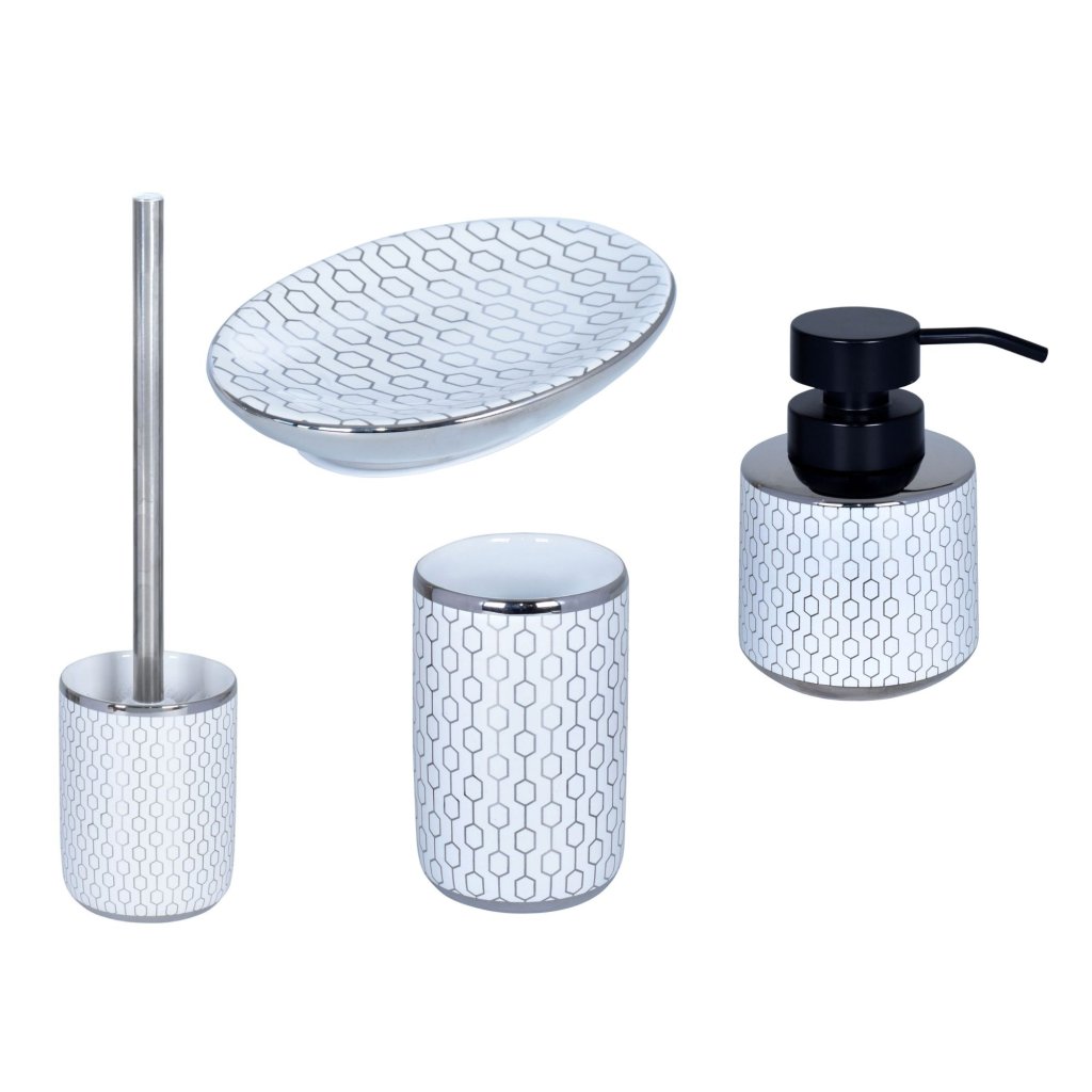 Dávkovač saponátu z kolekcie CADRIL inšpirovaná trendom Art Deco. Jemné geometrické vzory zdobia vysokokvalitnú keramiku a dodávajú doplnkom neuveriteľnú pôvab a eleganciu.