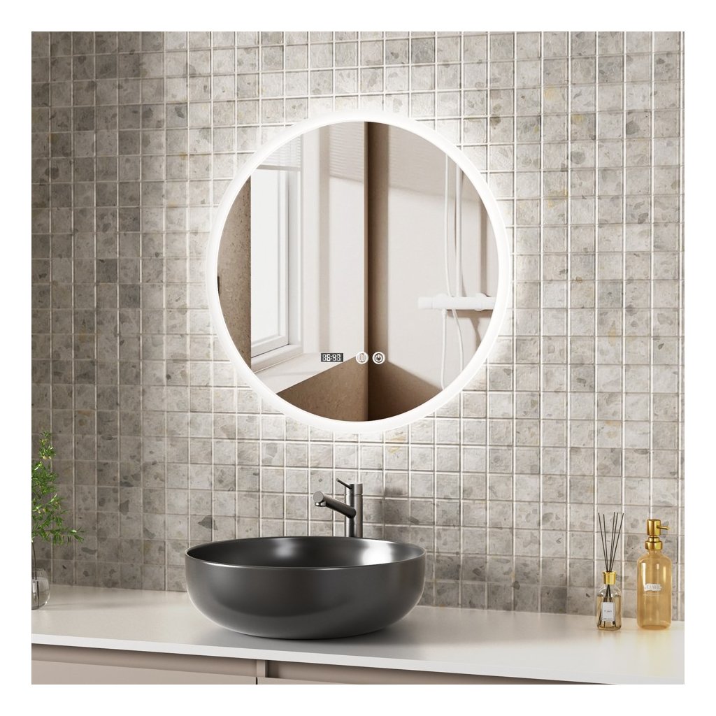 Erga Deam, okrúhle LED zrkadlo 60cm, 3 farby svetla, predné osvetlenie, vyhrievacia podložka proti zapareniu, ERG-V01-Deam-6060-CL