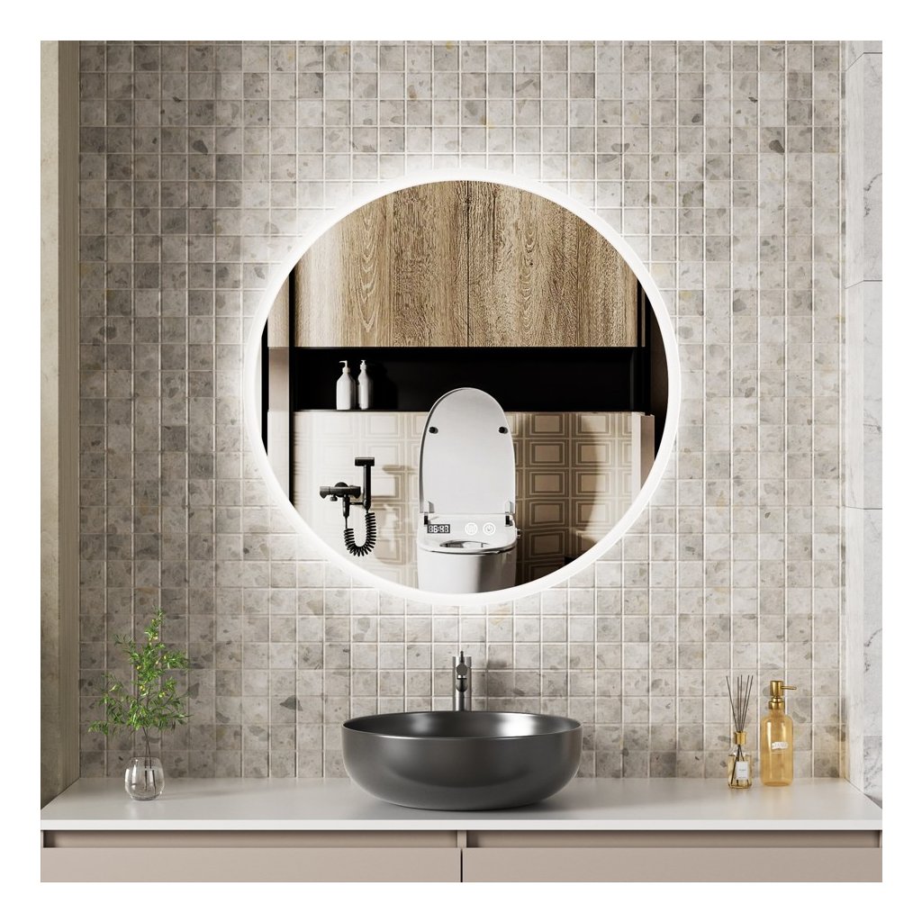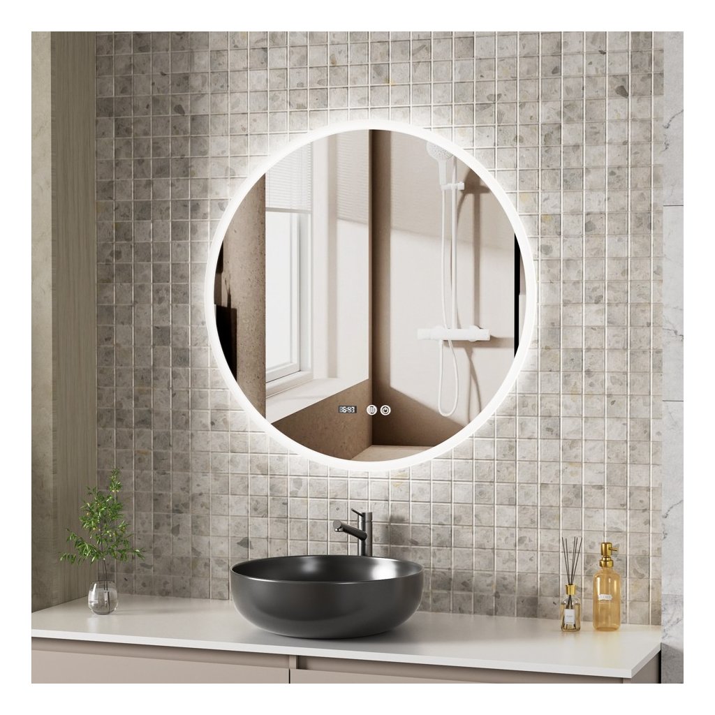 Erga Deam, okrúhle LED zrkadlo 80cm, 3 farby svetla, predné osvetlenie, vyhrievacia podložka proti zapareniu, ERG-V01-Deam-8080-CL