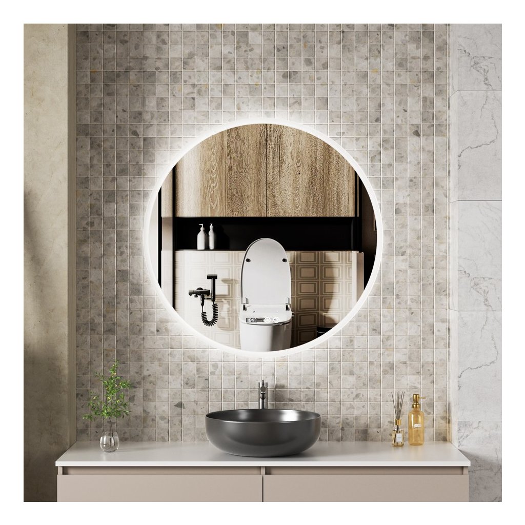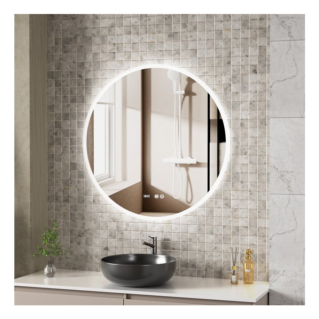 Erga Deam, okrúhle LED zrkadlo 90cm, 3 farby svetla, predné osvetlenie, vyhrievacia podložka proti zapareniu, ERG-V01-Deam-9090-CL