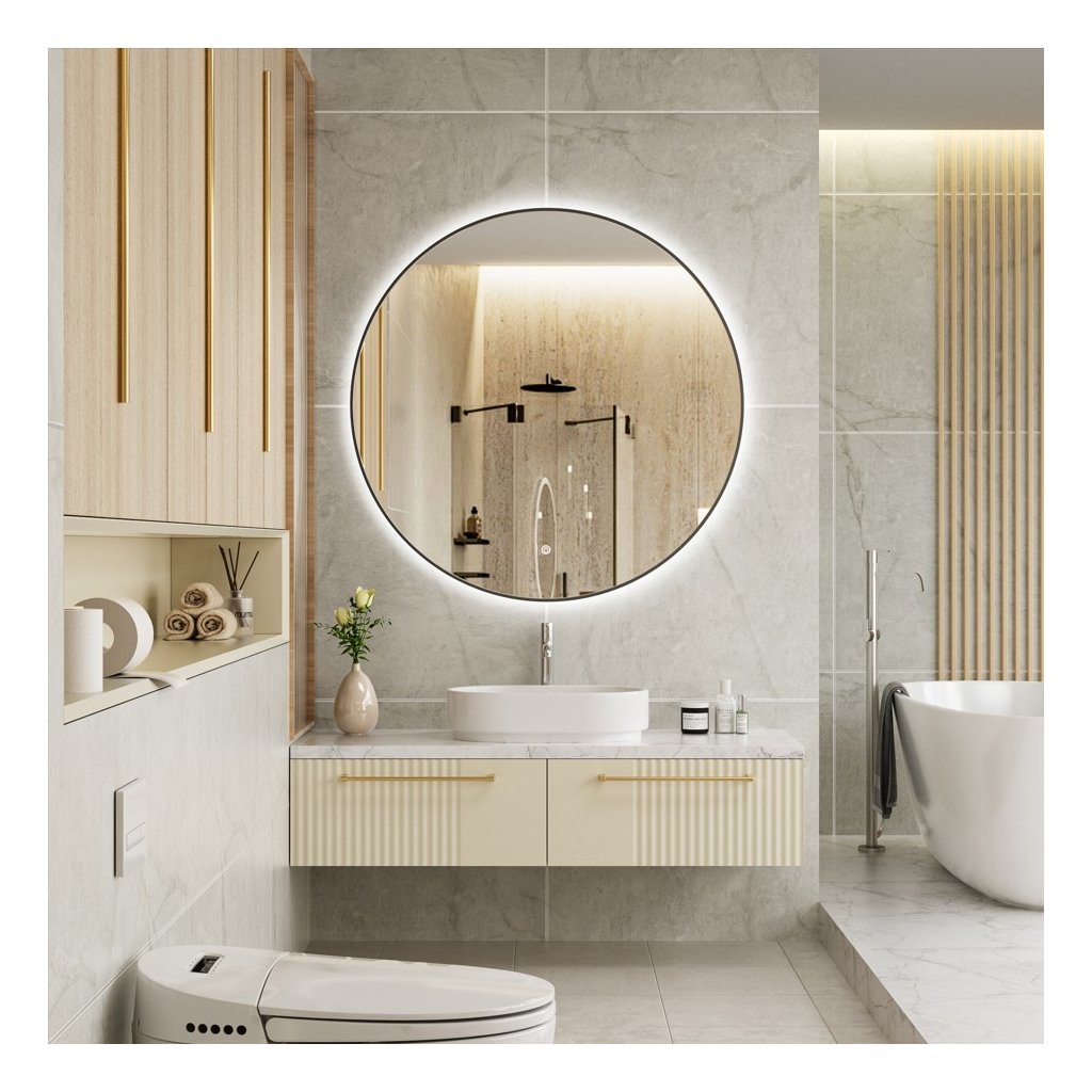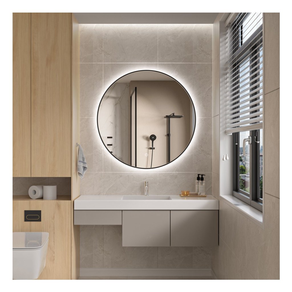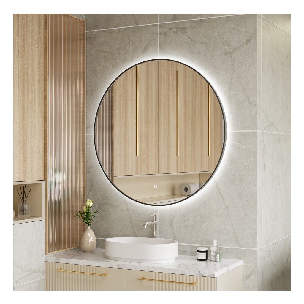 Erga Emma, okrúhle LED zrkadlo 100cm, čierny kovový rám, 2300 lm, 6500K, zadné osvetlenie, ERG-V01-201-1010-BK