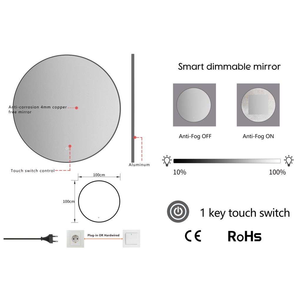 - Toto LED zrkadlo je stmievateľné, ovládané spínačom dotykového senzora. Jednoducho stlačte tlačidlo vypínača napájania na 2-3 sekundy a upravte jas z 10% na 100%. Nastavenia jasu sa ukladajú automaticky, takže jas nemusíte zakaždým upravovať.