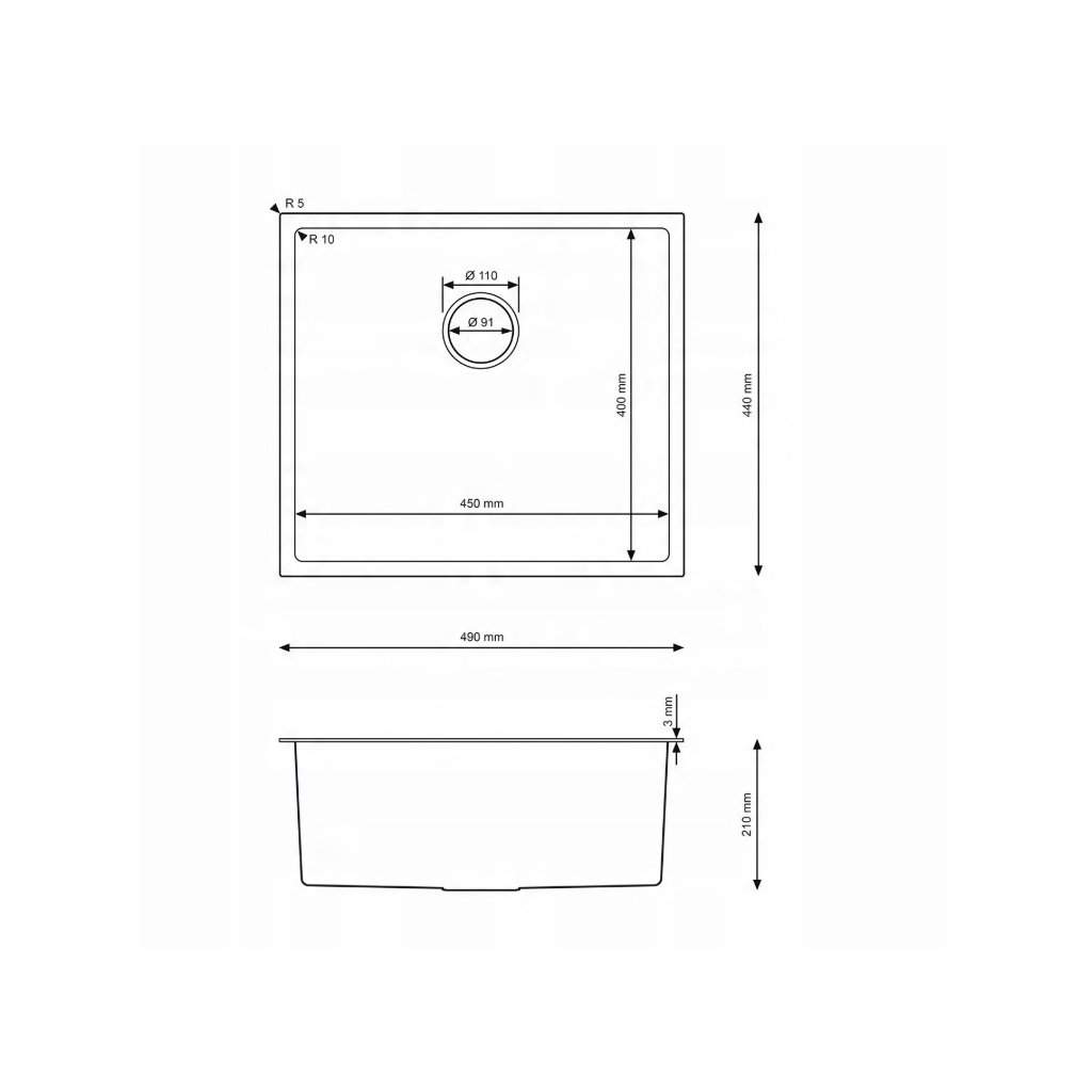 - Rozmery kuchynského drezu: 490 mm x 440 mm x 210 mm