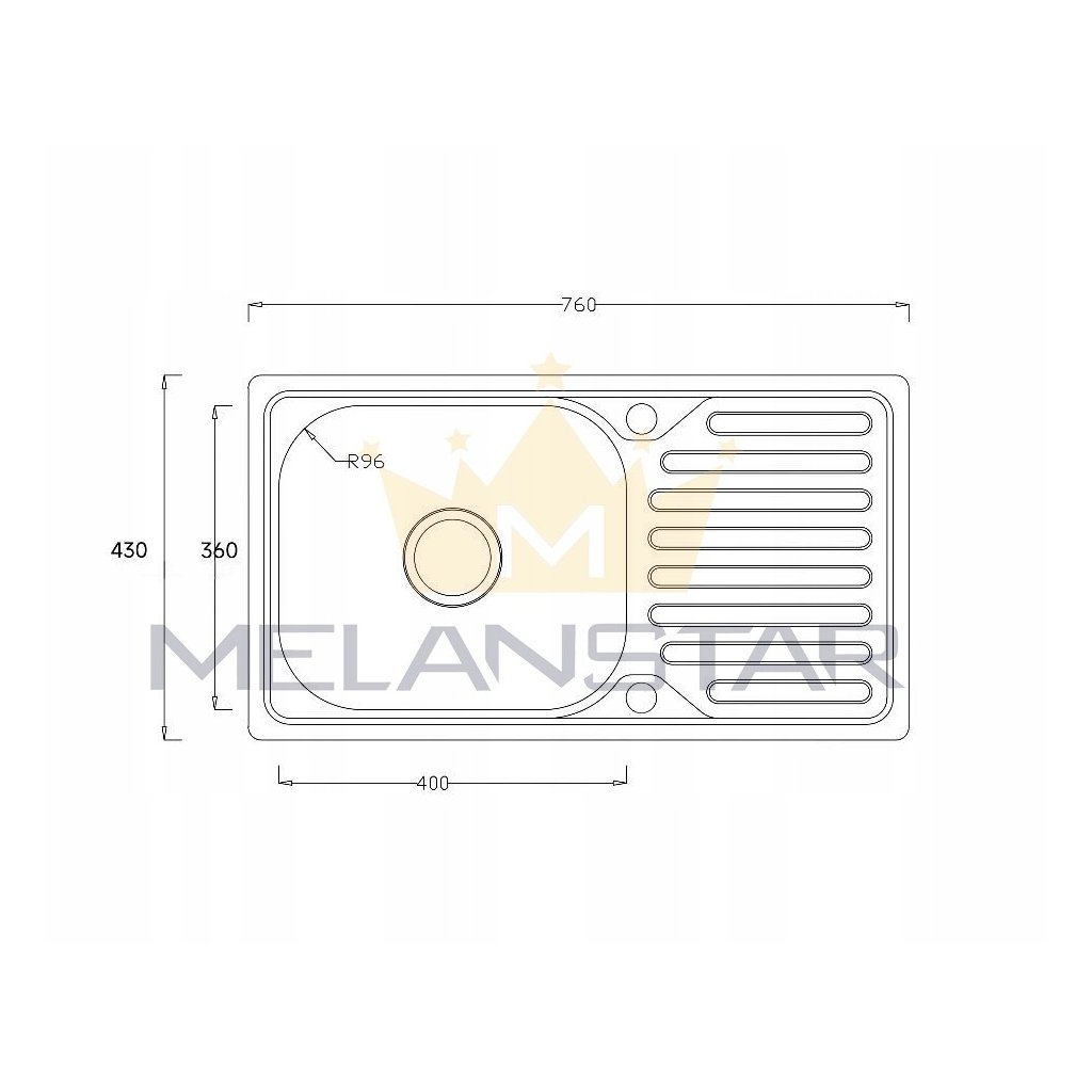 - Rozmery kuchynského drezu: 760 mm x 430 mm x 160 mm