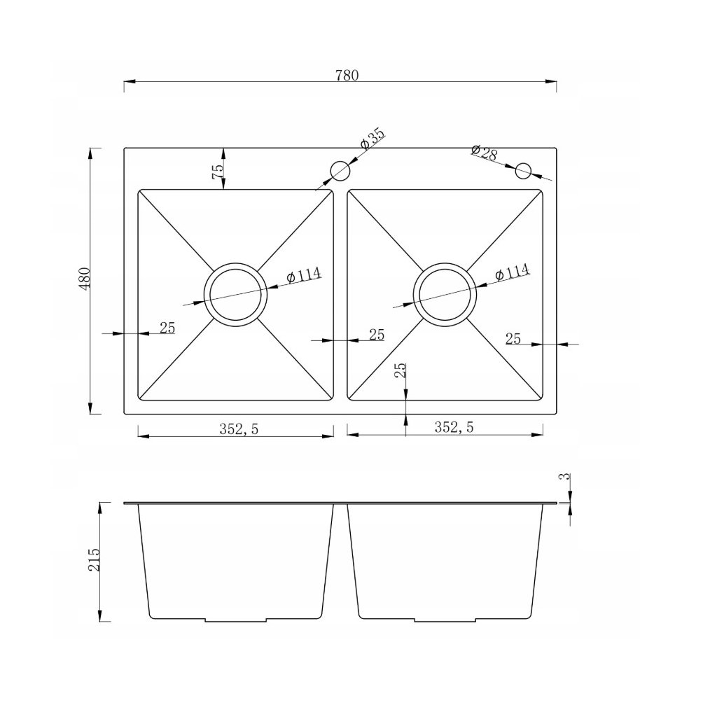 - Rozmery drezu: 780 mm x 480 mm x 210 mm