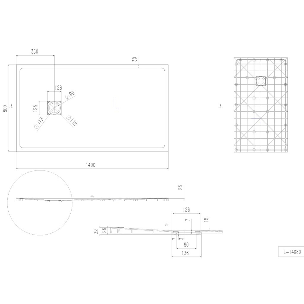Erga Hyper, SMC sprchová vanička 140x80x2,6 cm + sifón, šedá matná, ERG-V06-SMC-8014S-GR
