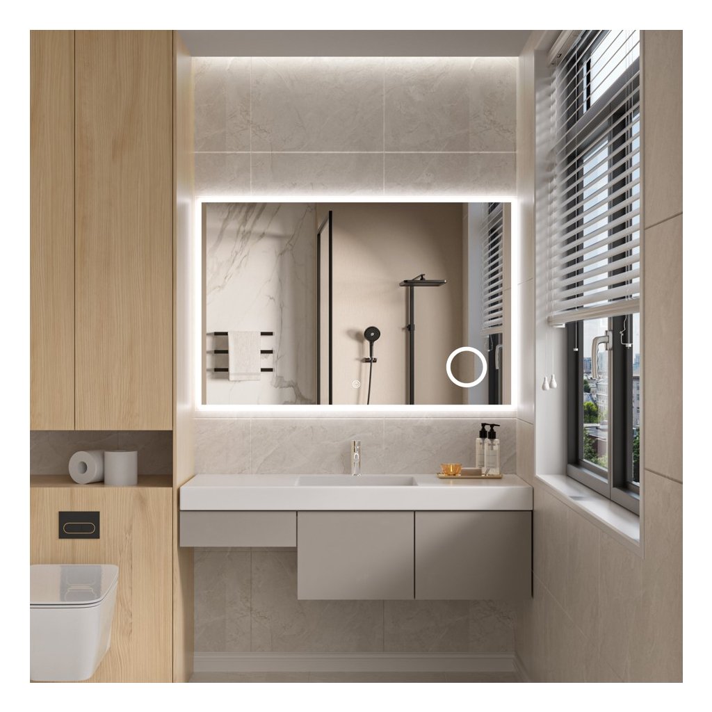 Protiparová podložka proti zahmlievaniu | LED zrkadlo má zabudované odhmlievanie. Spínač proti zahmlievaniu má samostatné ovládanie, ktoré je bezpečné a energeticky úsporné a môžete ho zapnúť alebo vypnúť podľa potreby. Takže sa nemusíte báť, že sa pri starostlivosti o pleť alebo make-up budete pozerať na zrkadlo zahmlené. | |