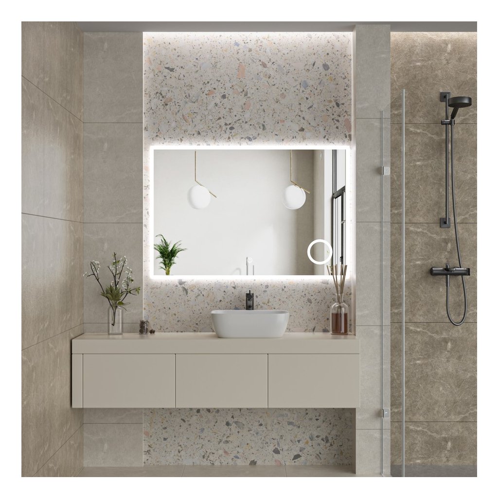 Erga Luna, LED zrkadlo 120x80cm s kozmetickým zrkadlom 3x zväčšenie, 3105 lm, 6500K, predné/zadné osvetlenie, ERG-V01-124-1280-00