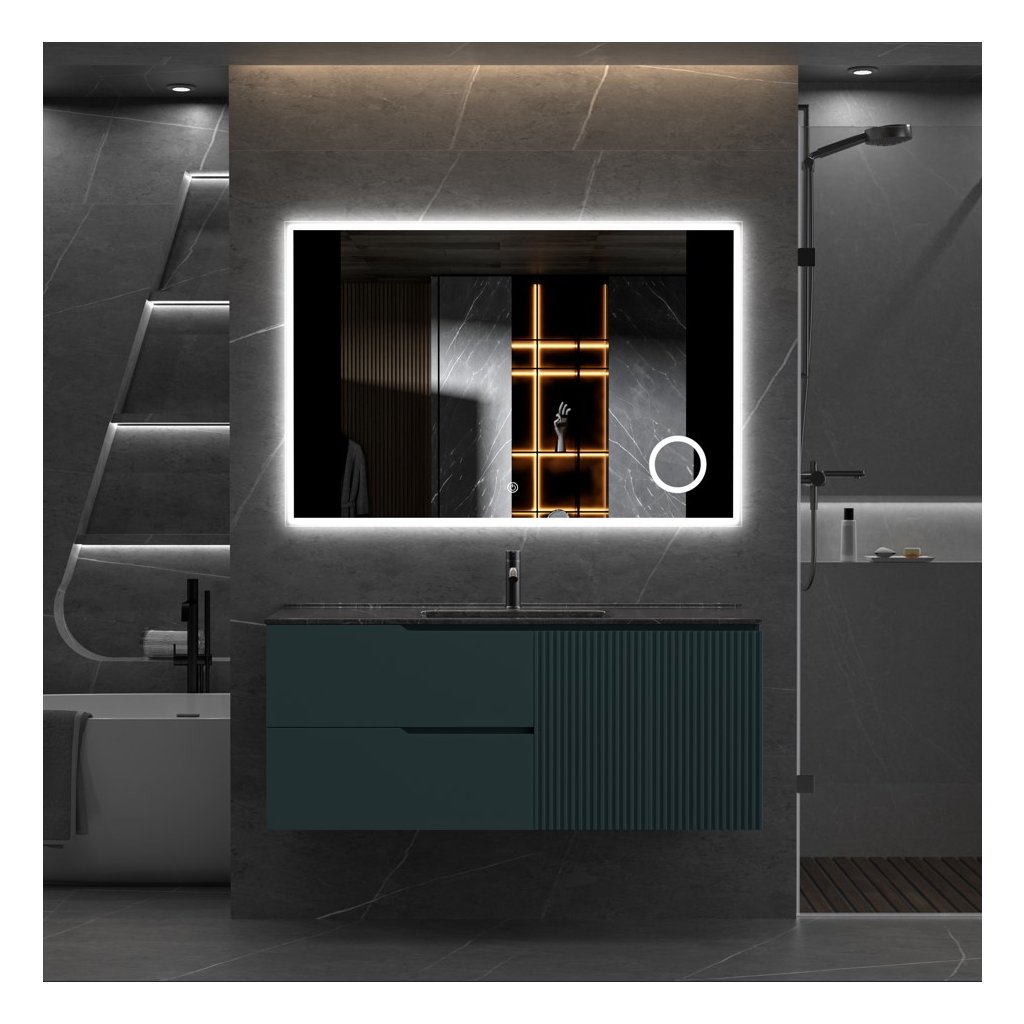 ZRKADLO S FUNKCIOU VYKUROVANIA PROTI ZAHMLIEVANIU (BEZ PARY)Zrkadlo je tiež vybavené integrovaným LED osvetlením a vykurovaním napájaným zo siete. Zahrievanie zrkadla zabraňuje zahmlievaniu jeho povrchu. Zrkadlo je vybavené vyhrievacou podložkou, ktorá zabraňuje kondenzácii na zrkadle a svoj odraz môžete vidieť vždy aj po sprche alebo kúpeli. Funkciu kúrenia je možné aktivovať dotykovým spínačom na zrkadle. Dotykové tlačidlá sa rozsvietia a po stlačení sa zmenia na modré, čo indikuje aktivitu funkcie. |