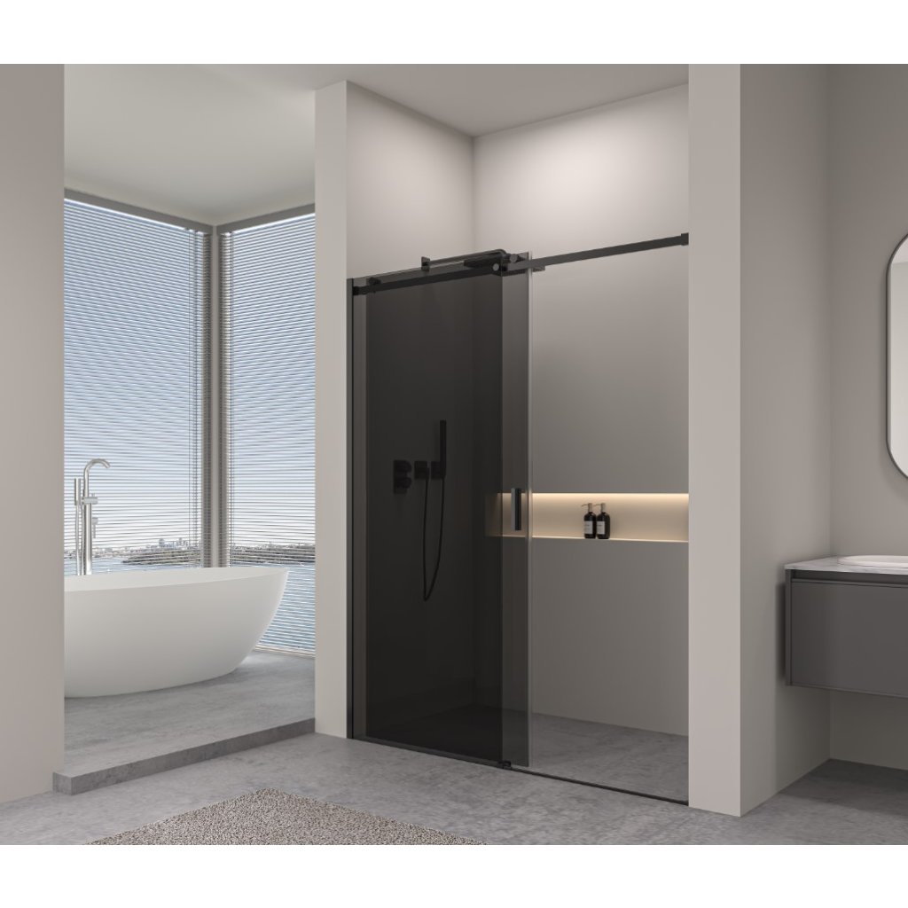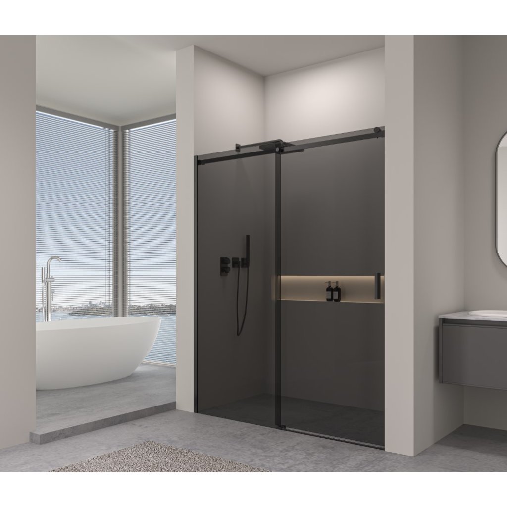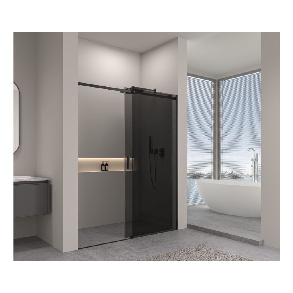 Erga Lynn, posuvné sprchové dvere do otvoru 150x195 cm, 8mm šedé sklo, čierny profil, ERG-V02-LYNN-D150-GR-BK