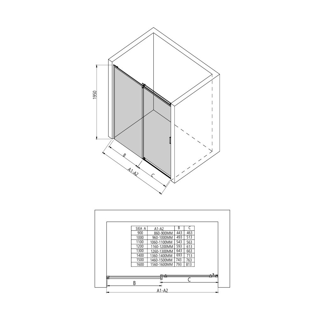 - Možnosť vytvoriť sprchovú kabínu v kombinácii s pevnou sklenenou sprchovou: áno (šírka 700-1200 mm)