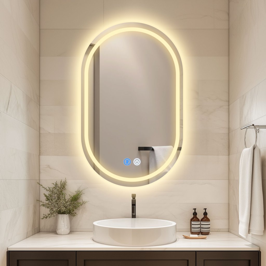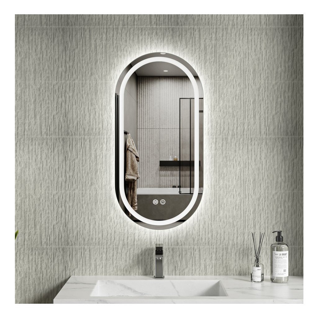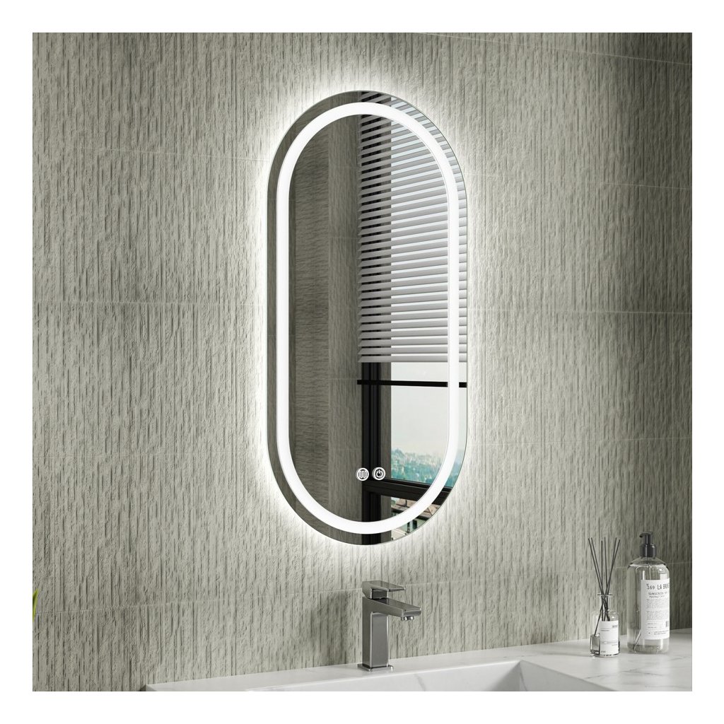 Erga Lyra, oválne LED zrkadlo 40x80cm, 3 farby svetla, predné a zadné osvetlenie, vyhrievacia podložka proti zapareniu, ERG-V01-LYRA-4080-CL