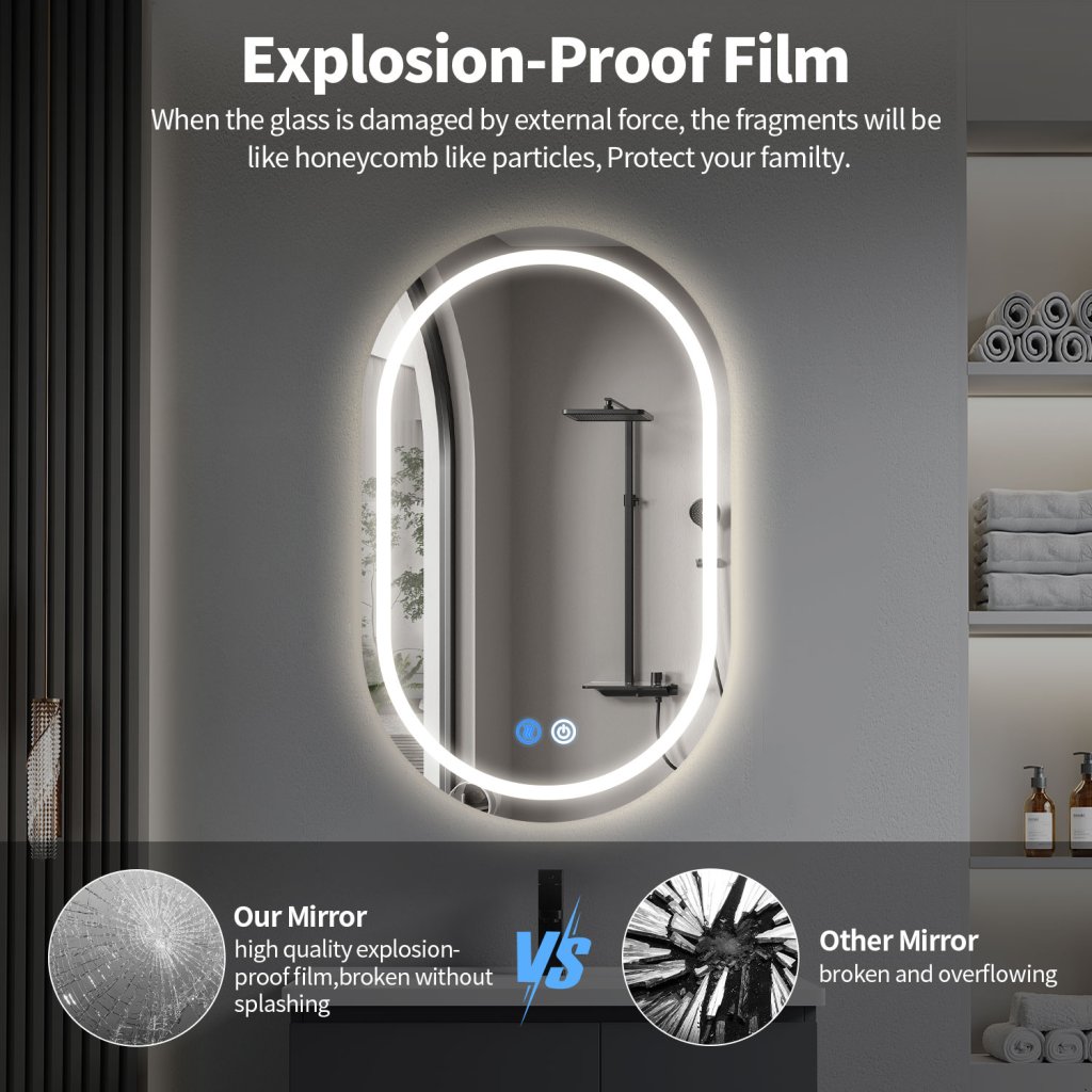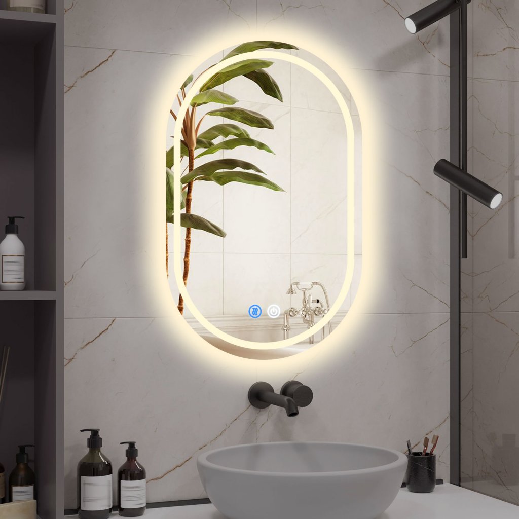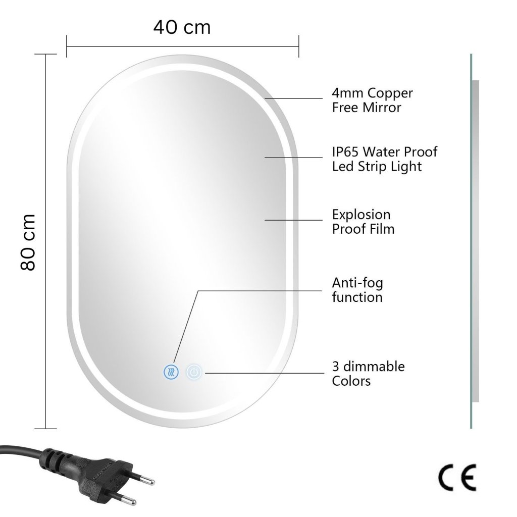 Erga Lyra, oválne LED zrkadlo 40x80cm, 3 farby svetla, predné a zadné osvetlenie, vyhrievacia podložka proti zapareniu, ERG-V01-LYRA-4080-CL
