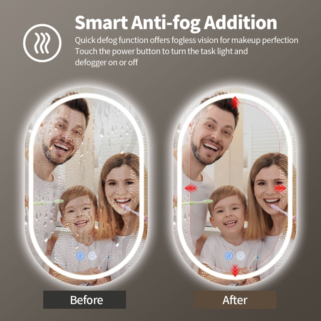 | Protiparová podložka proti zahmlievaniu | LED zrkadlo má zabudované odhmlievanie. Spínač proti zahmlievaniu má samostatné ovládanie, ktoré je bezpečné a energeticky úsporné a môžete ho zapnúť alebo vypnúť podľa potreby. Takže sa nemusíte báť, že sa pri starostlivosti o pleť alebo make-up budete pozerať na zrkadlo zahmlené. | |