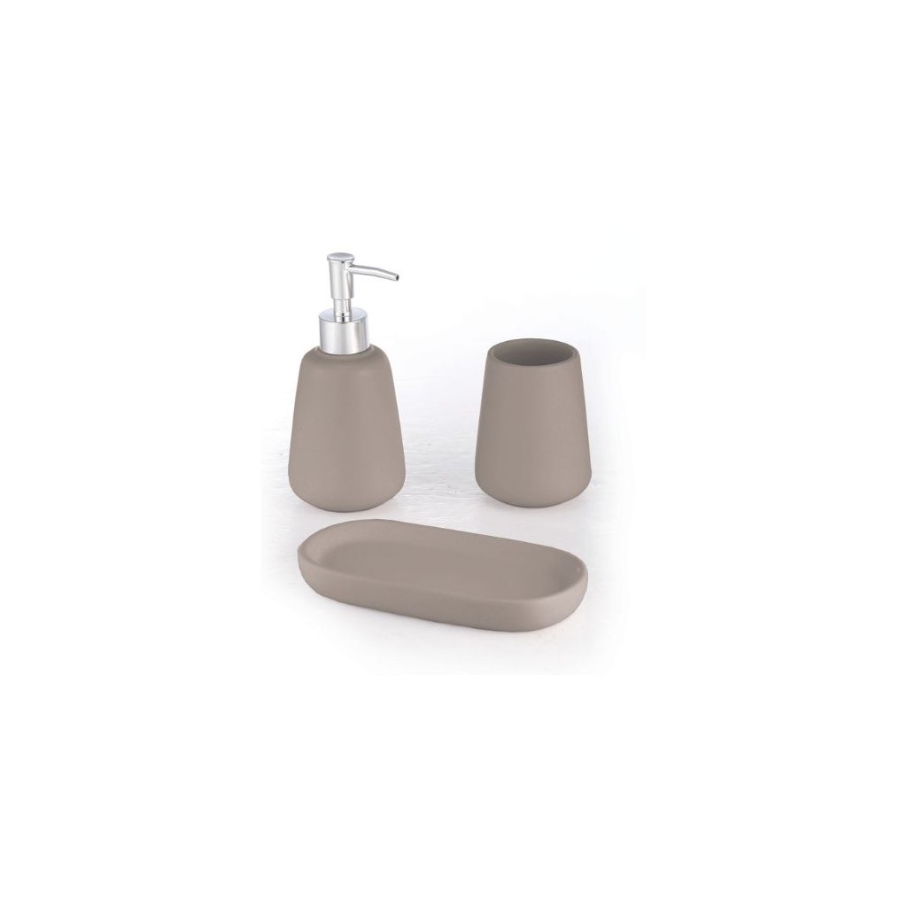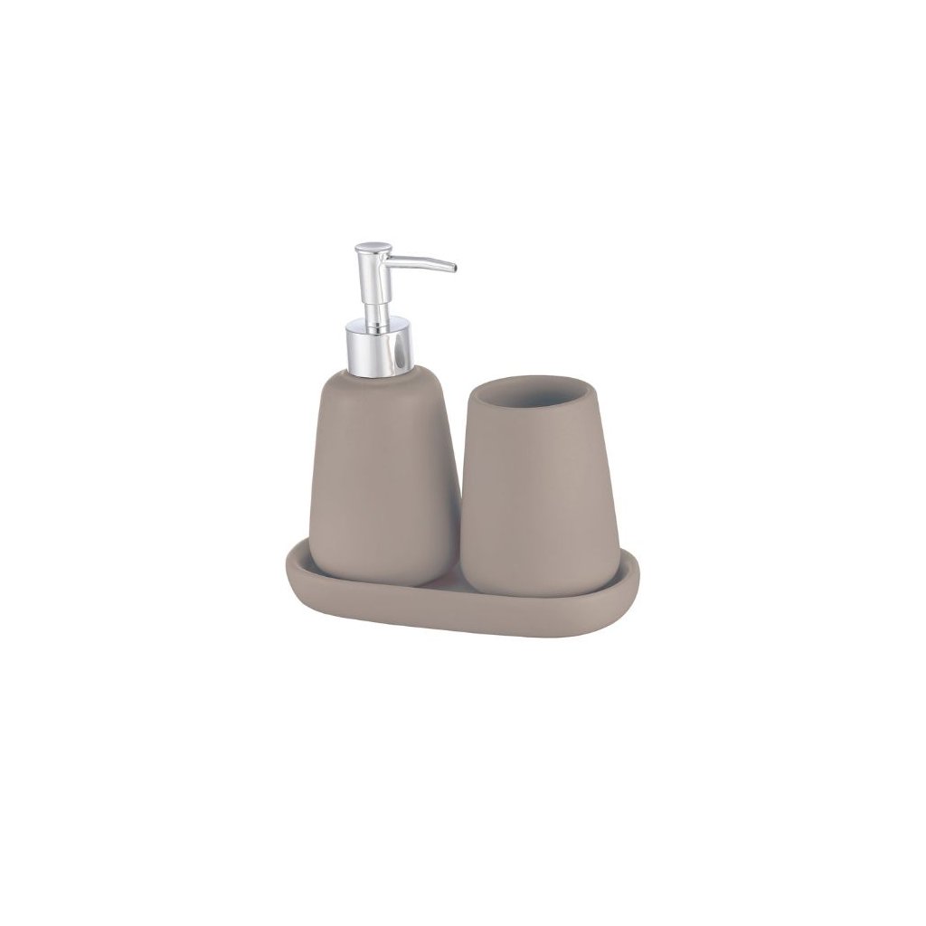 Erga Milo, keramická súprava dávkovača na mydlo a pohára na kefky, béžová matná, ERG-08233