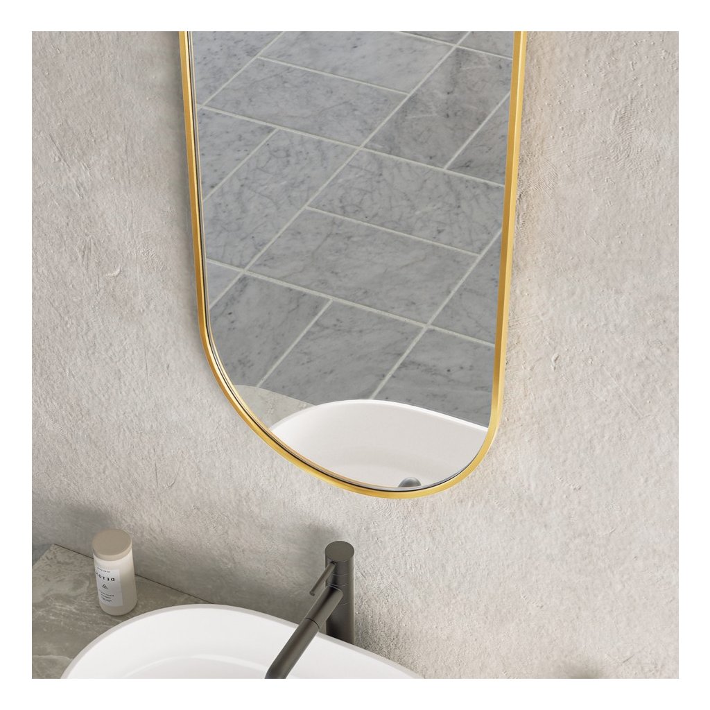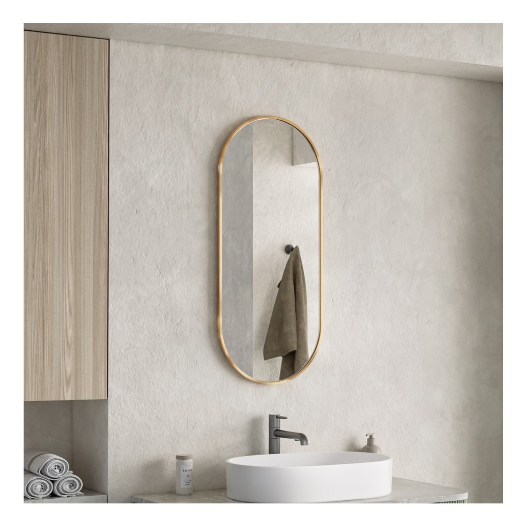 Oválny tvar: Hlavnou výhodou oválneho zrkadla v kúpeľni je, že zmäkčuje vizuálnu estetiku priestoru a dodáva mu organickejší a menej strohý vzhľad, najmä v porovnaní s tradičnými obdĺžnikovými alebo štvorcovými zrkadlami. Zakrivené okraje pomáhajú opticky zväčšiť menšie kúpeľne, pretože neoddeľujú stenu tak ostro ako hranaté rámy. Oválny tvar sa hodí k rôznym štýlom interiéru – od moderného minimalizmu, cez tradičný, až po art deco. Dobre sa kombinuje so zaoblenými líniami ostatného vybavenia, ako sú umývadlá alebo vane |