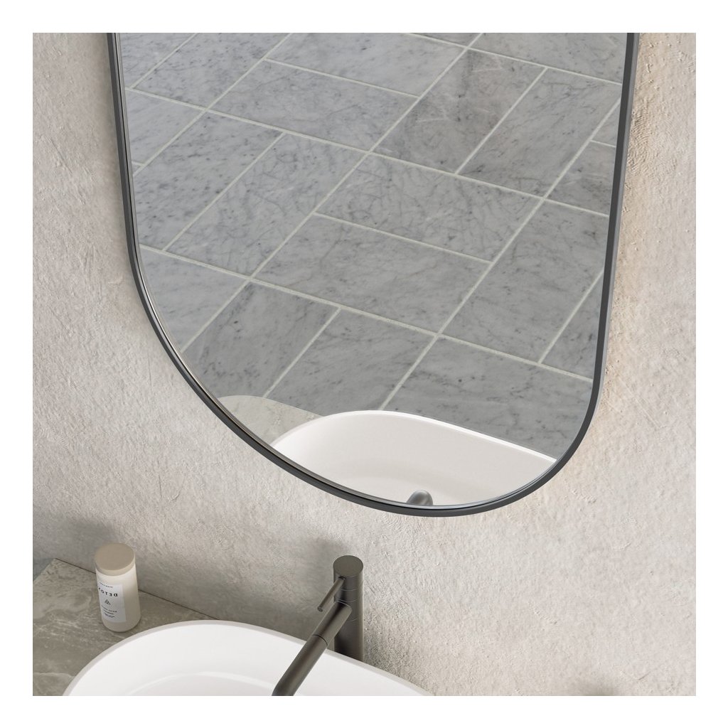 Oválny tvar: Hlavnou výhodou oválneho zrkadla v kúpeľni je, že zmäkčuje vizuálnu estetiku priestoru a dodáva mu organickejší a menej strohý vzhľad, najmä v porovnaní s tradičnými obdĺžnikovými alebo štvorcovými zrkadlami. Zakrivené okraje pomáhajú opticky zväčšiť menšie kúpeľne, pretože neoddeľujú stenu tak ostro ako hranaté rámy. Oválny tvar sa hodí k rôznym štýlom interiéru – od moderného minimalizmu, cez tradičný, až po art deco. Dobre sa kombinuje so zaoblenými líniami ostatného vybavenia, ako sú umývadlá alebo vane |