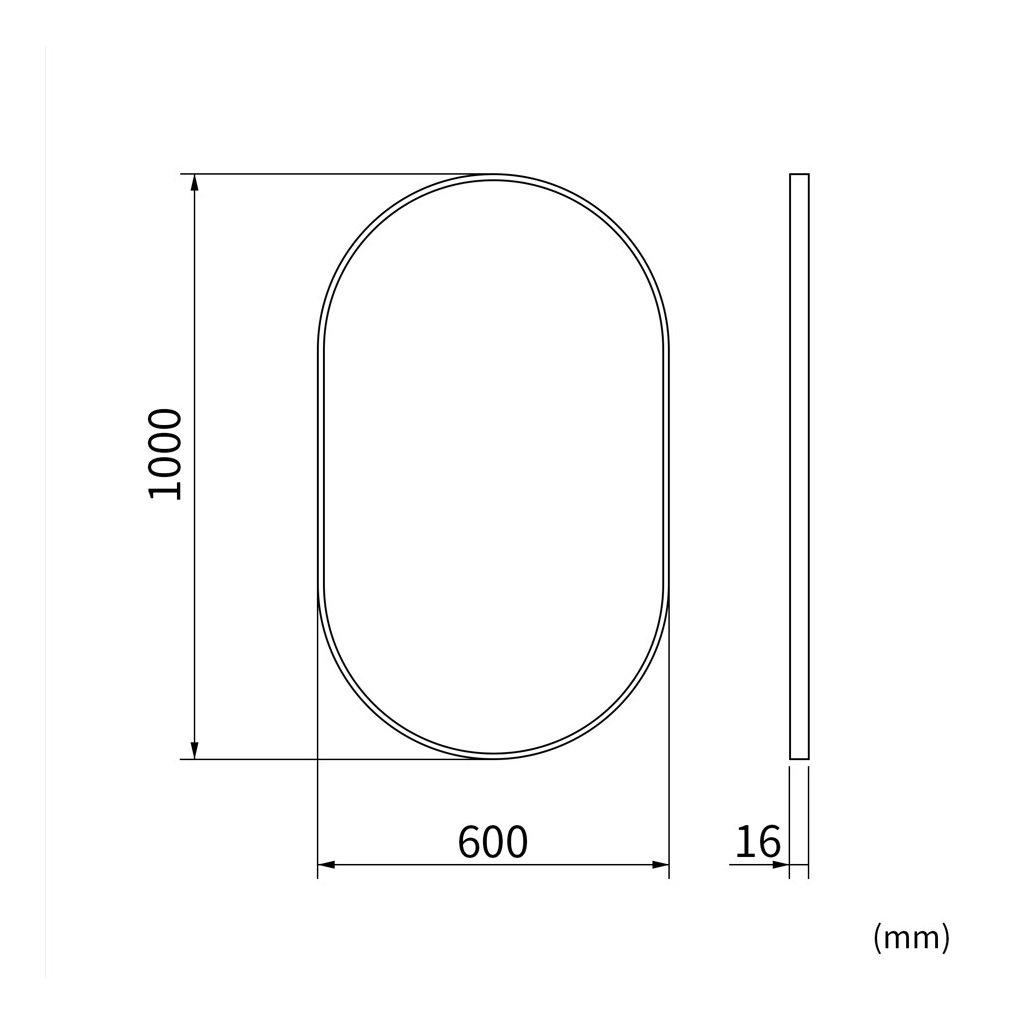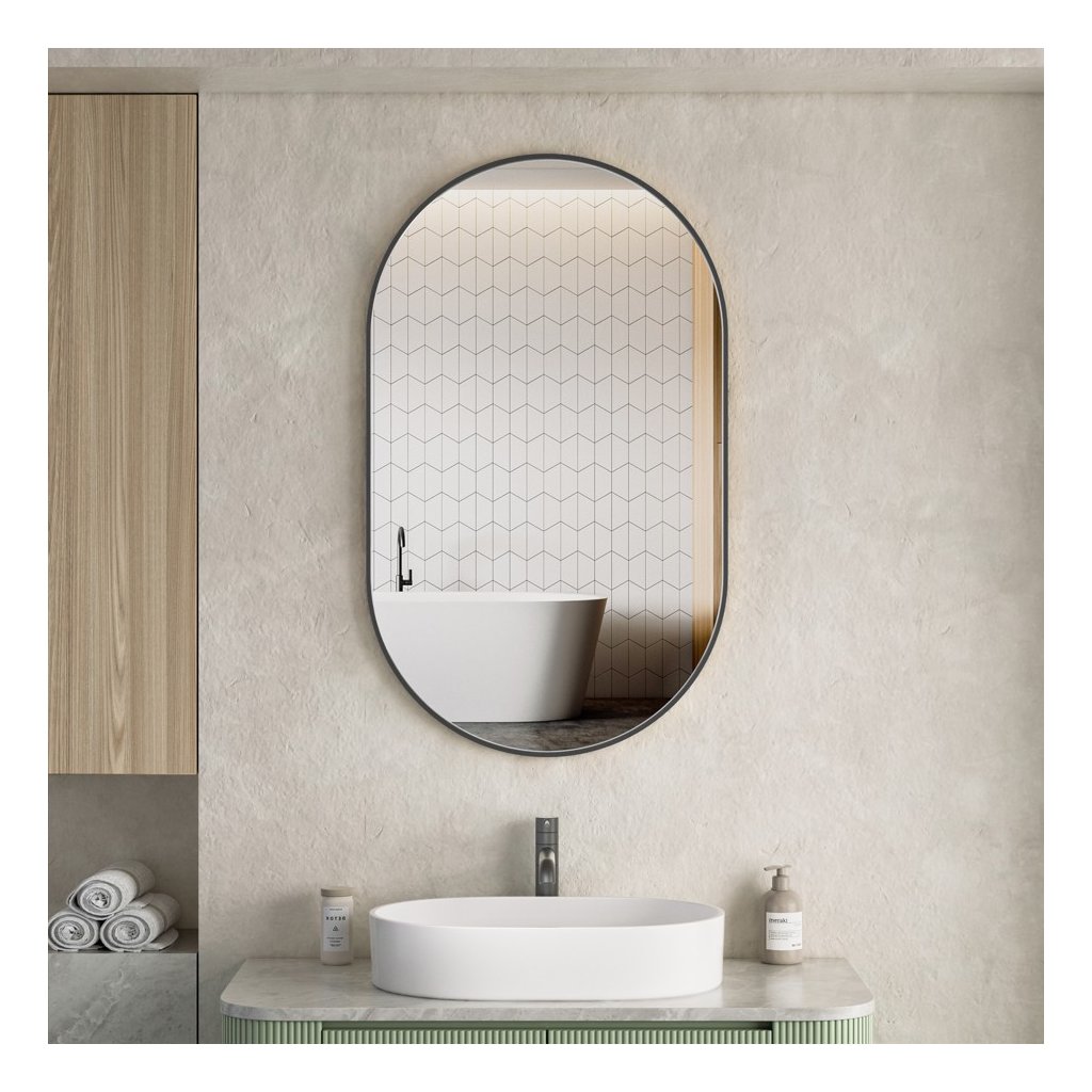 Erga Oval, oválne zrkadlo 60x100cm, čierny rám, ERG-V01-OVAL-6010-BK