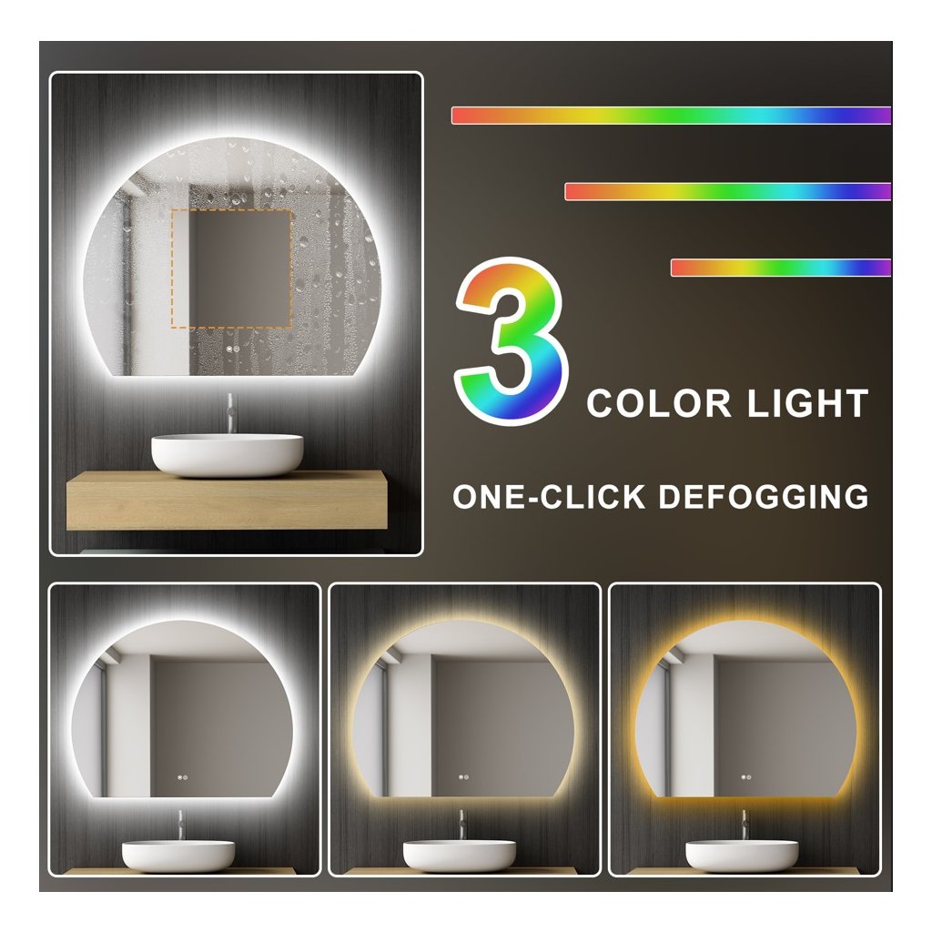 - Funkcia odhmlievania uľahčuje vidieť váš odraz po zapnutí - protiparová podložka proti zahmlievaniu: Naše nástenné LED zrkadlo má zabudované odhmlievanie. Spínač proti zahmlievaniu má samostatné ovládanie, ktoré je bezpečné a energeticky úsporné a môžete ho zapnúť alebo vypnúť podľa potreby. Takže sa nemusíte báť, že sa pri starostlivosti o pleť alebo make-upu budete pozerať na zrkadlo zahmlené.