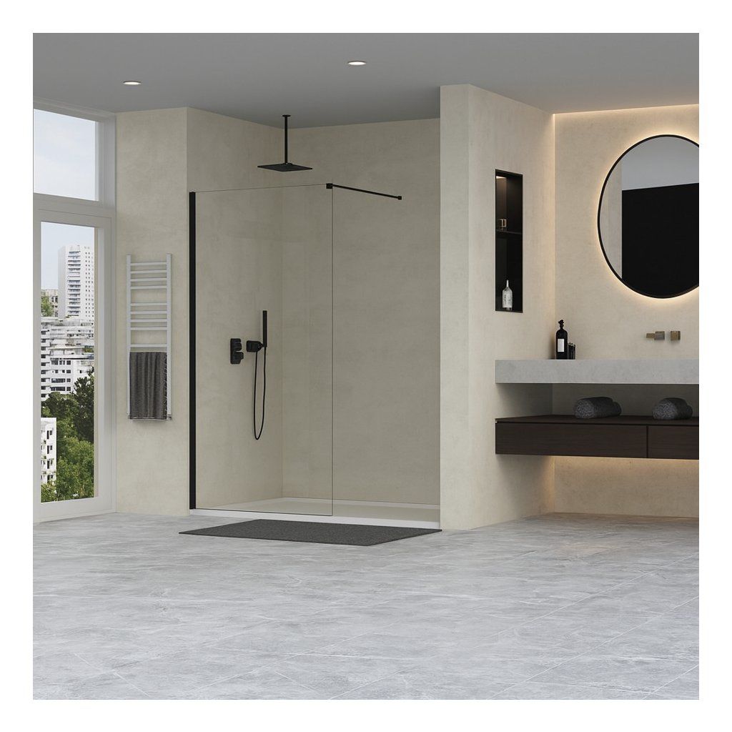 Erga Paris, sprchová zástena Walk-In 100x200 cm, 8mm číre sklo, čierny profil, ERG-V02-PARIS-100x200-CL-BK