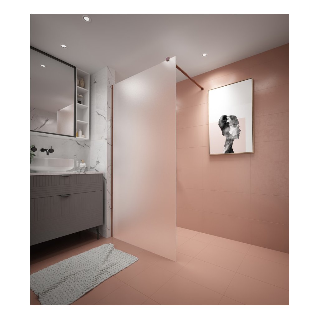 Erga Paris, sprchová zástena Walk-In 50x200 cm, 8mm sklo námraza, medený matný profil, ERG-V02-PARIS-050x200-FR-CO