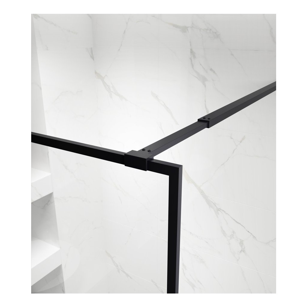 - Typ: sprchová zástena WALK-IN v čiernom kovovom ráme.