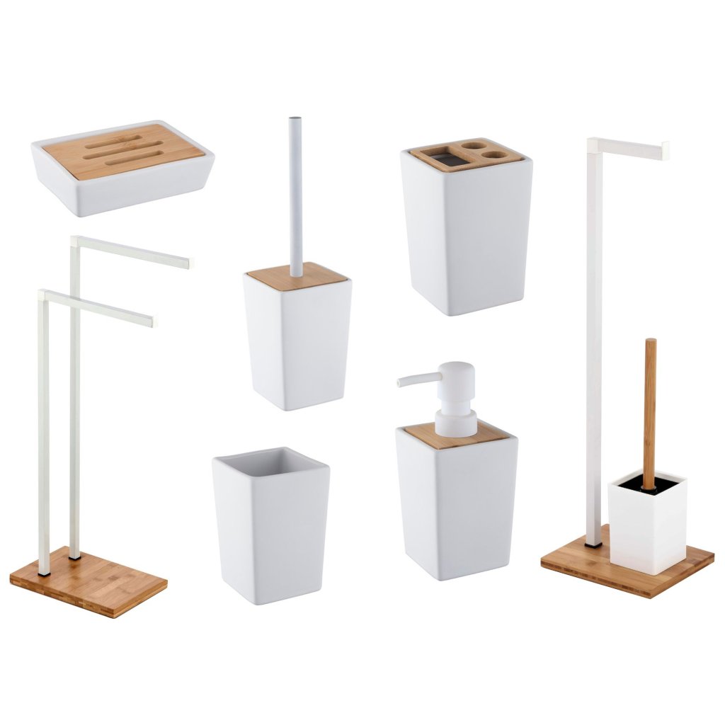 Voľne stojaci kozmetický pohár. Jemná kombinácia sanitárnej keramiky s drevenými prvkami. Jednoduchosť a elegancia v minimalistickom vydaní.
