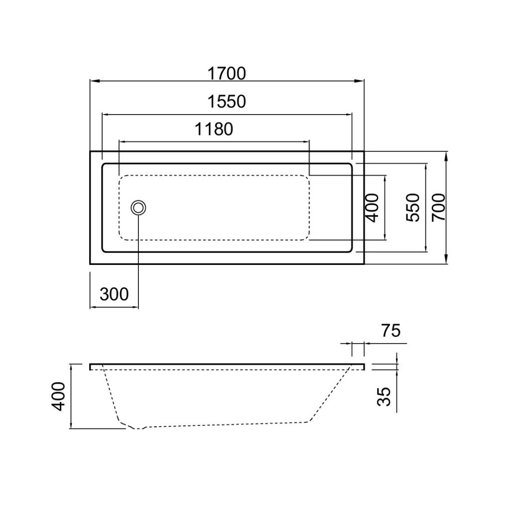 Erga Pureline-S, vaňa 1700x700x400 mm bez nožičiek, biela lesklá, ERG-V07-PURELINE-S-170x070-WH