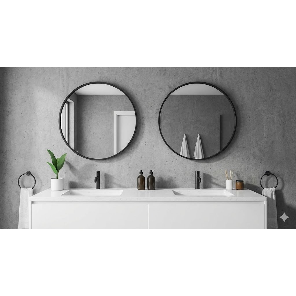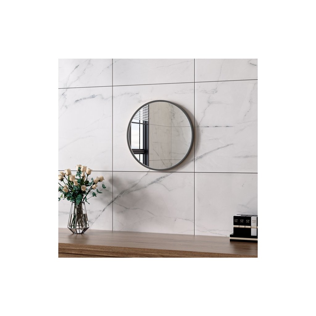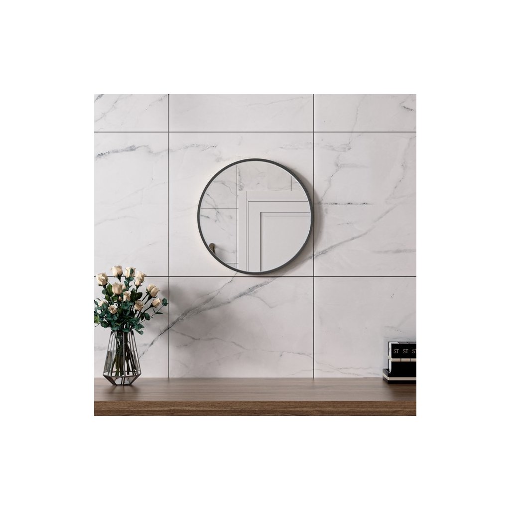 Erga Round, okrúhle zrkadlo 40cm, čierny rám, ERG-V01-ROUND-4040-BK