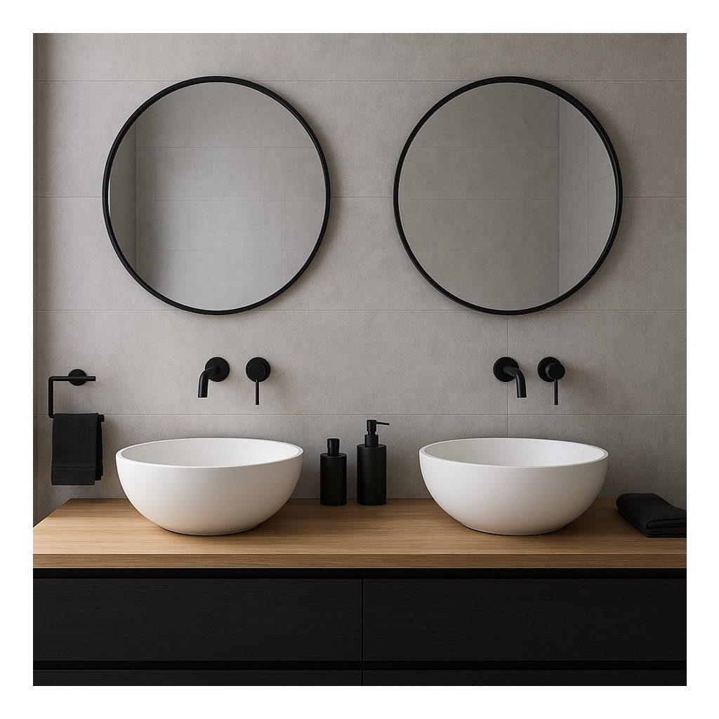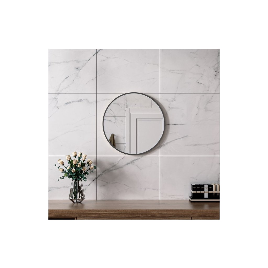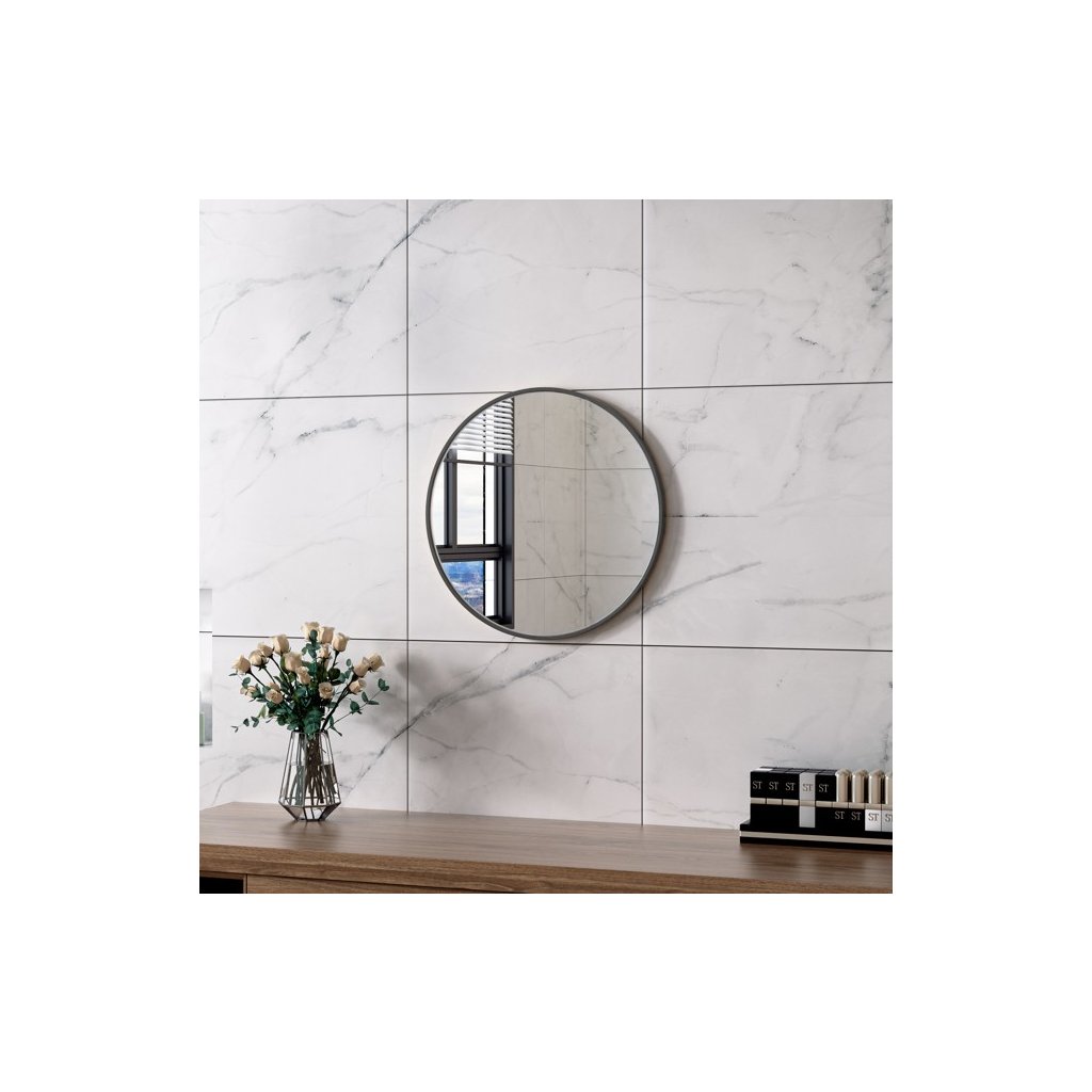 Erga Round, okrúhle zrkadlo 50cm, čierny rám, ERG-V01-ROUND-5050-BK