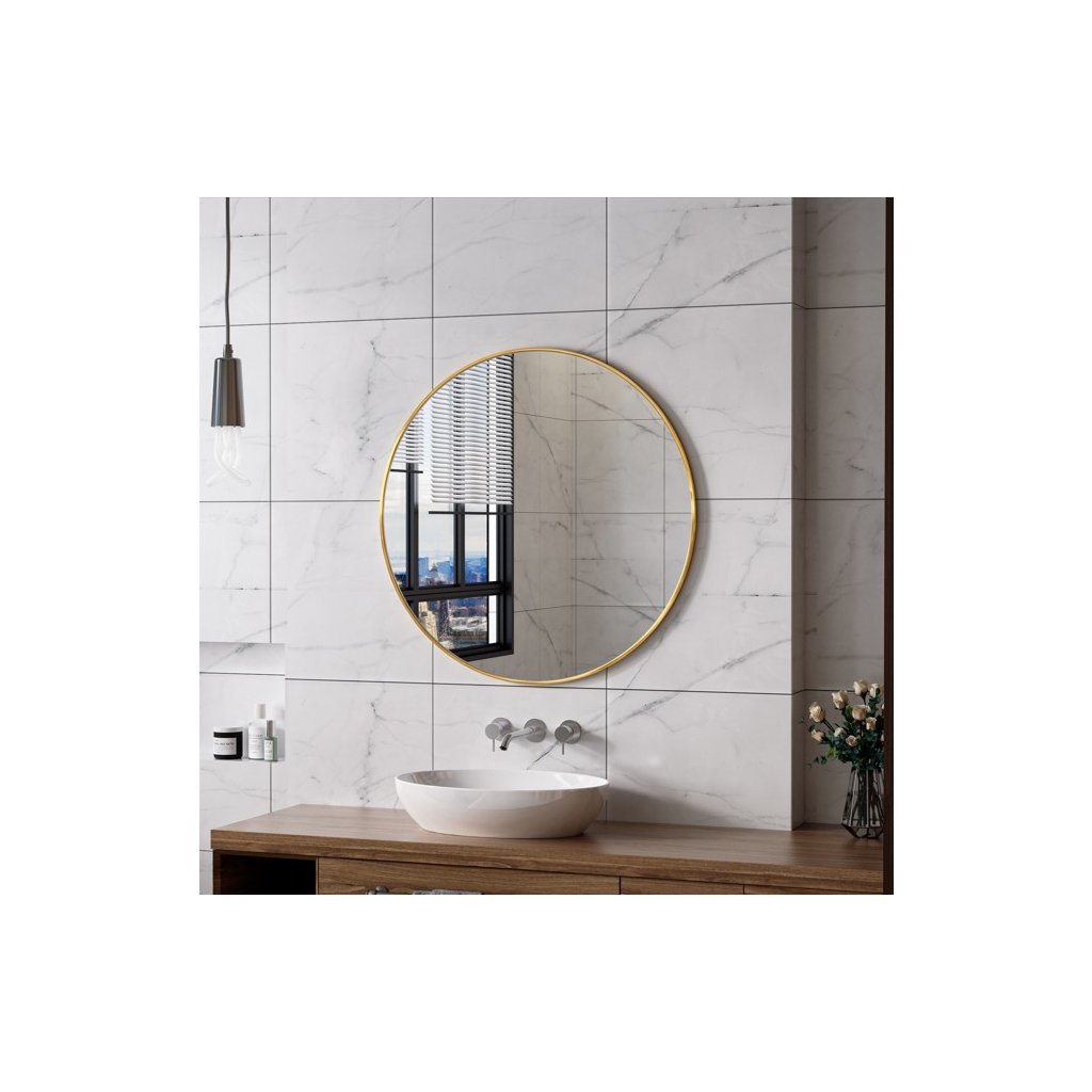 Erga Round, okrúhle zrkadlo 90cm, zlatý rám, ERG-V01-ROUND-9090-GD