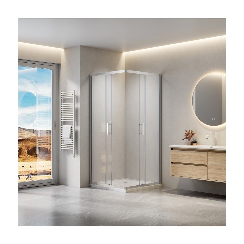 - Typ: rohová sprchová kabína s posuvnými dverami