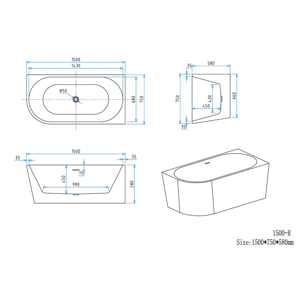 Erga Zara, rohová voľne stojaca vaňa 150x75 cm + odtoková zátka, pravá, biela lesklá, ERG-ZARA-150075R-WH-WH