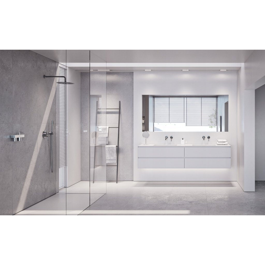 Podomietkový systém Flusso je kompletná sada na vytvorenie sprchovacieho kúta. Dokonale zladené štylistické prvky vytvárajú modernú a elegantnú sadu sprejov. Modernistická striekacia rukoväť a jednoduchá dažďová sprchová tabuľa dokonale zapadnú do jednoduchých aranžmánov z kameňa alebo betónu.