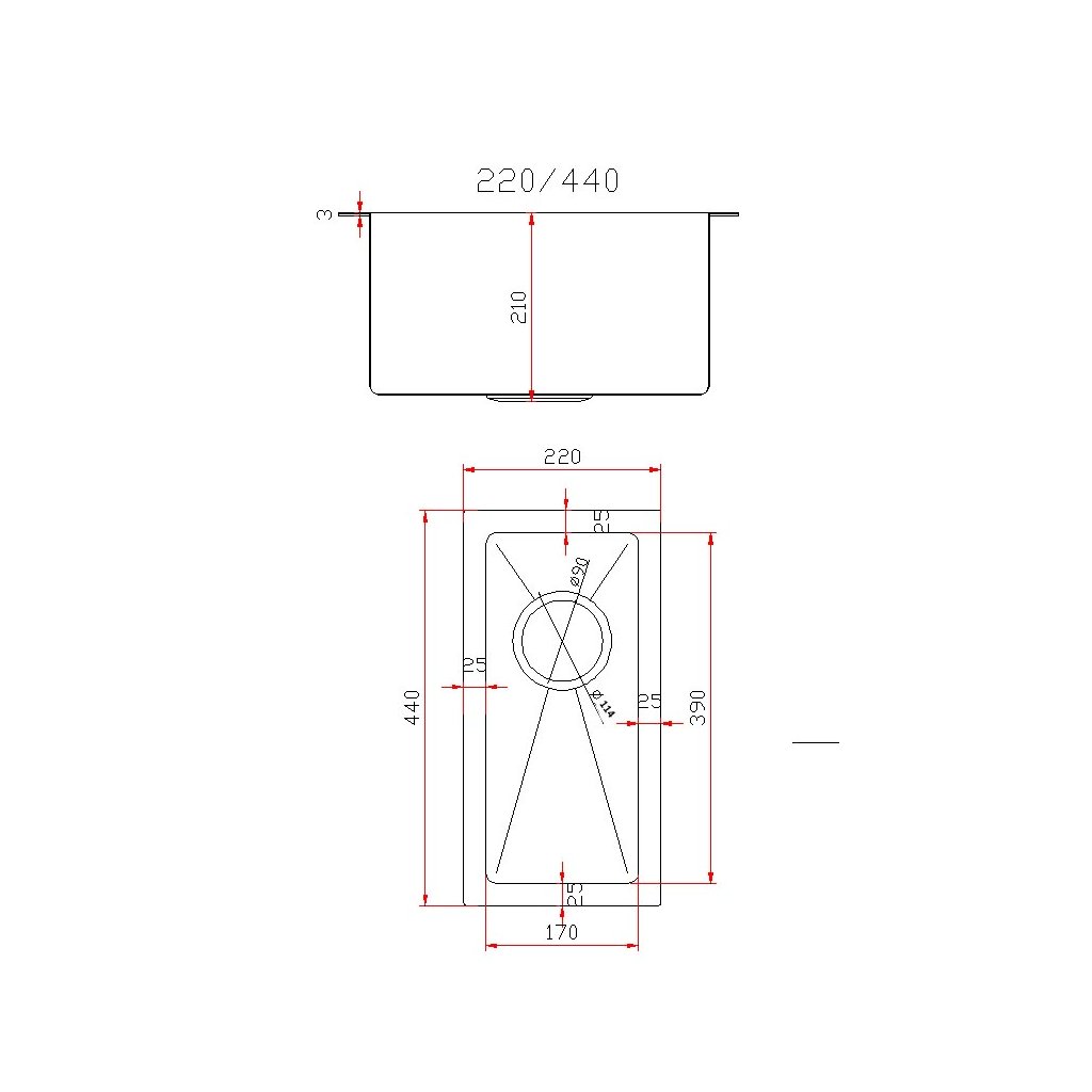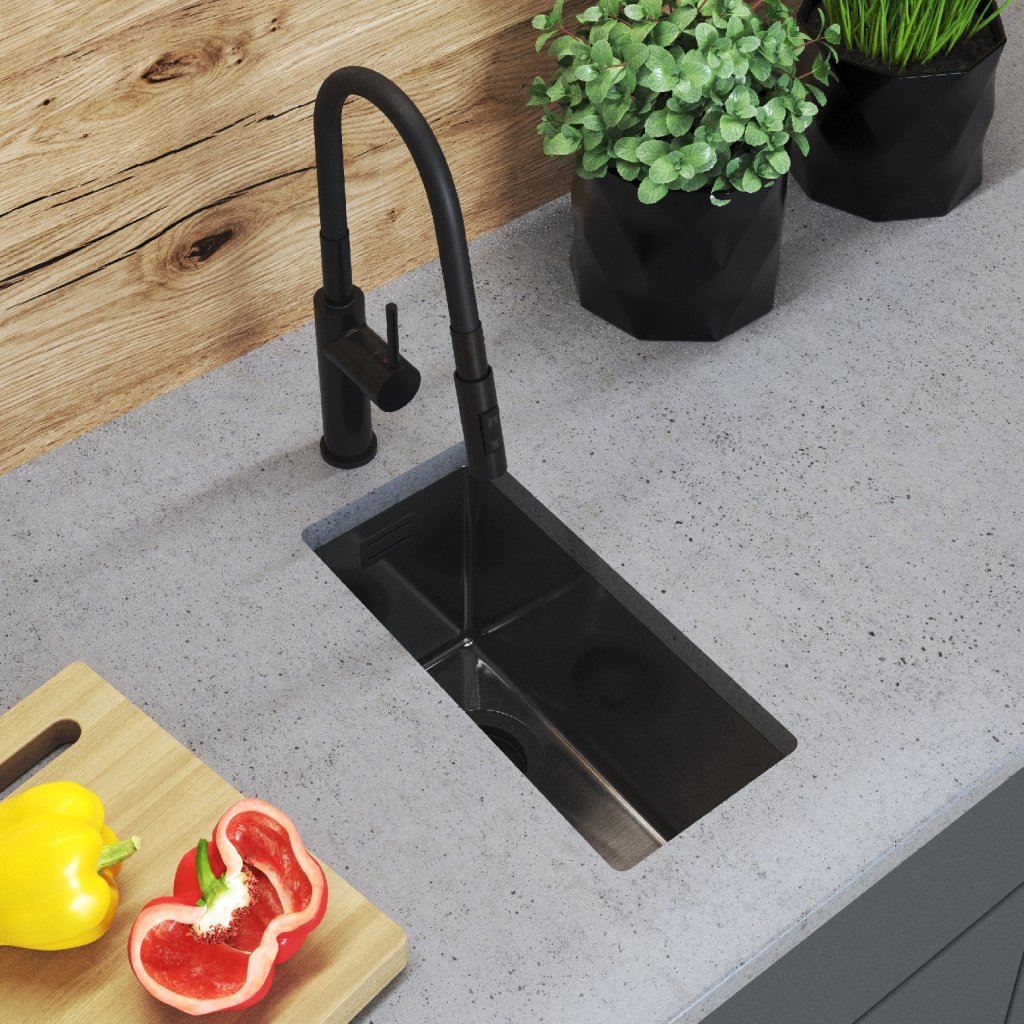 Gamma, 1-komorový oceľový drez 220x440x210 mm, čierna, GMA-S2244-BK