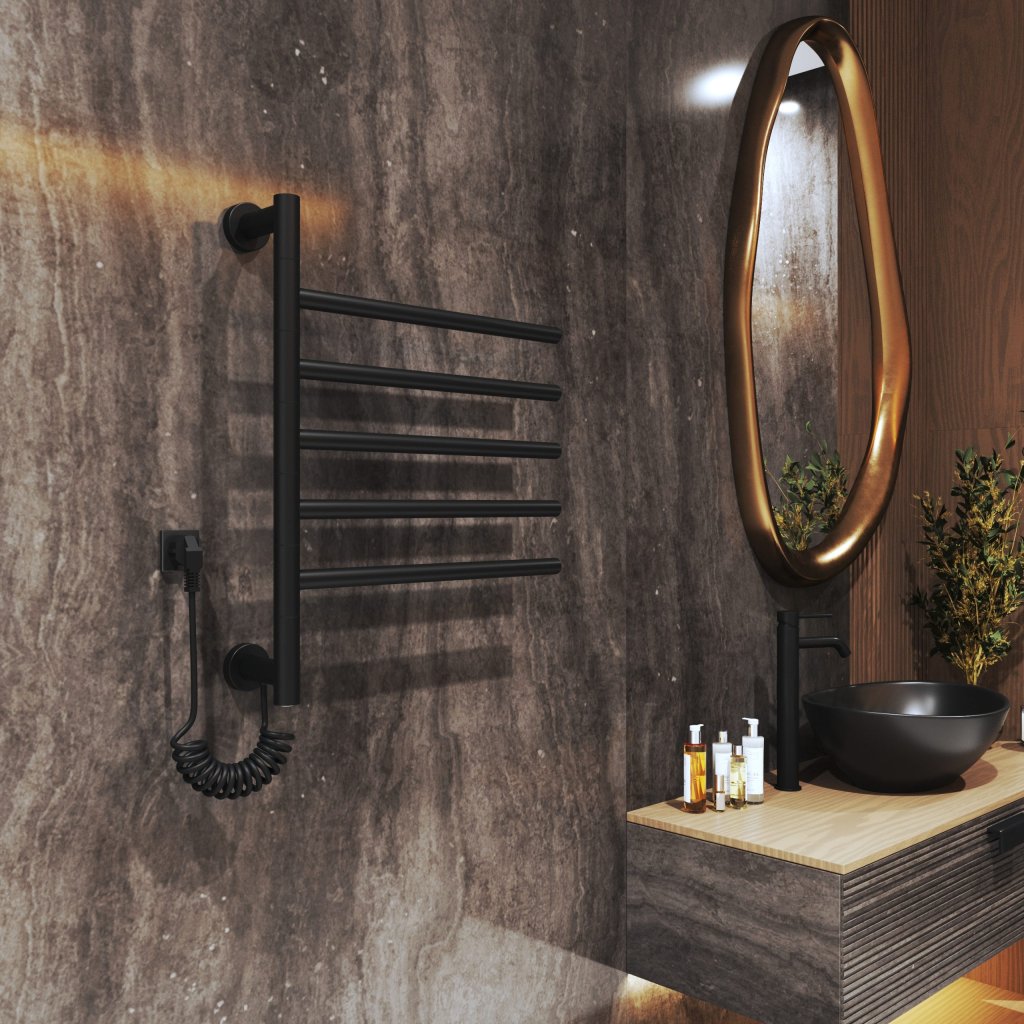 Matné čierne prevedenie dodáva radiátoru elegantný a minimalistický vzhľad, ktorý skvele zapadne do moderných, industriálnych aj loftových kúpeľní. Kompaktná konštrukcia nezaberá veľa miesta, no zároveň poskytuje praktickú odkladaciu plochu a estetický doplnok interiéru.
