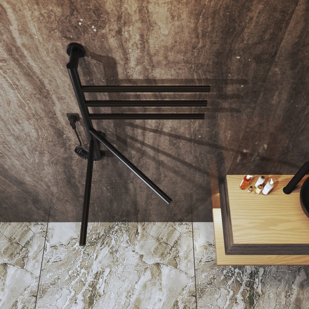 Gamma Awry, elektrický kúpeľňový radiátor s otočnými ramenami 516x622 mm, 75W, čierna, GMA-AWRY-622516-BK