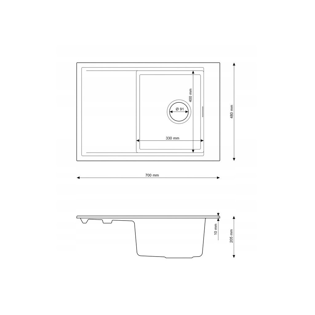 Gamma Design 7050, 1-komorový granitový drez 700x480x205 mm, čierna škvrnitá, GMA-ZLE000125