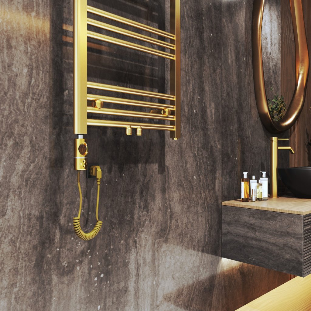 E-Flow Brushed Gold predstavuje moderné riešenie, ktoré spája pokročilú technológiu s výnimočne elegantným dizajnom. Jej luxusné brúsené zlaté vyhotovenie dokonale ladí s modernými kúpeľňovými radiátormi a dodáva interiéru harmonický, prémiový charakter. Vyznačuje sa minimalistickým tvarom, prehľadným ovládaním a vysokým komfortom pri každodennom používaní. Ponúka presnú reguláciu teploty a dlhodobú, spoľahlivú prevádzku. Je to ideálna voľba pre tých, ktorí hľadajú kombináciu komfortu, estetického vzhľadu a špičkovej kvality spracovania.
