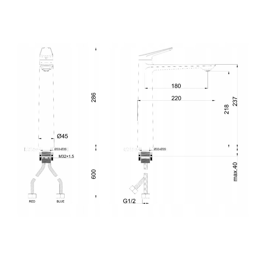 Gamma Evo, vysoká umývadlová batéria h-286, čierna matná, GMA-BEUW-BK