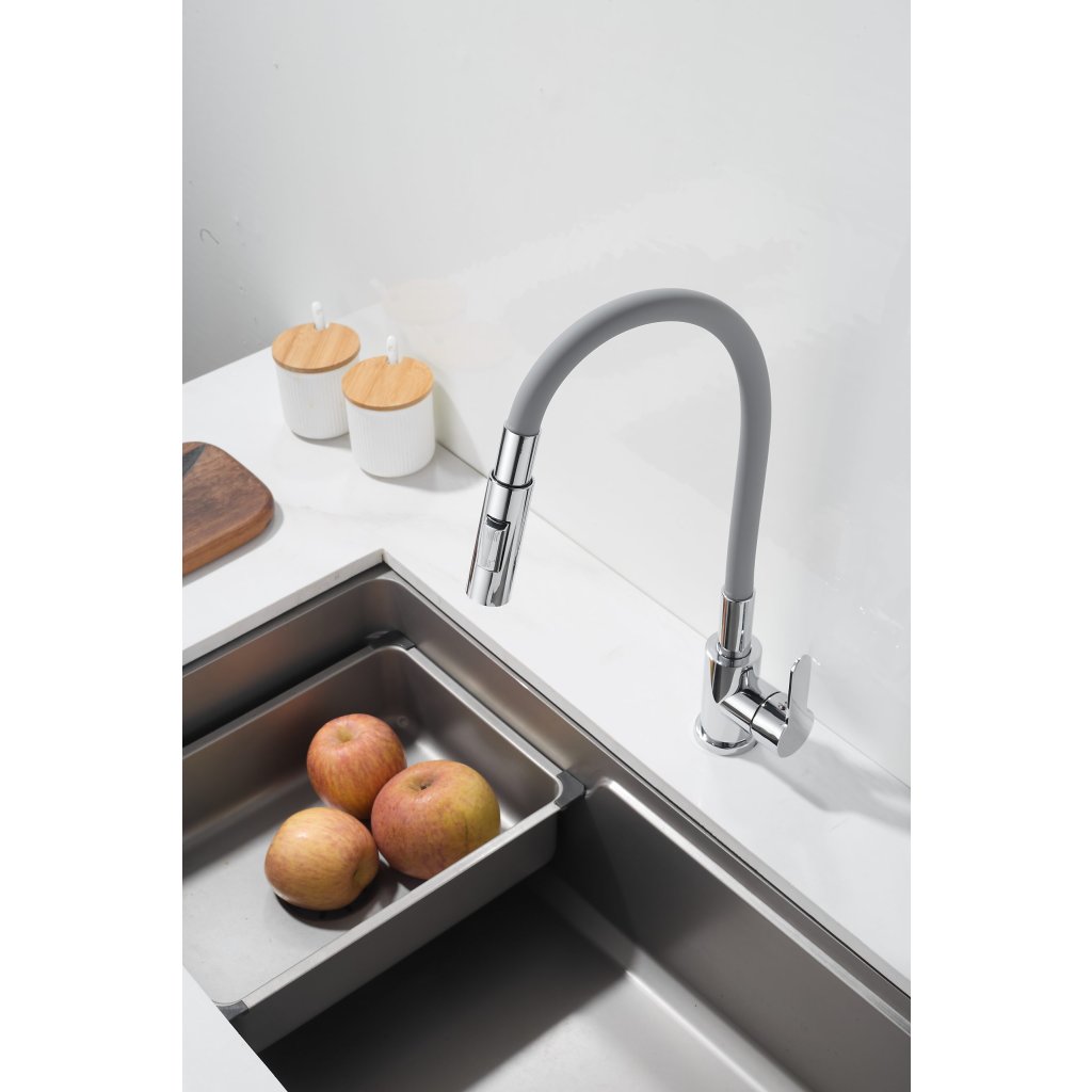 Gamma Flex 4000, stojanková drezová batéria s flexibilným ramenom, 2-funkčný výtok, šedá-chróm, GMA-BFX-4000G