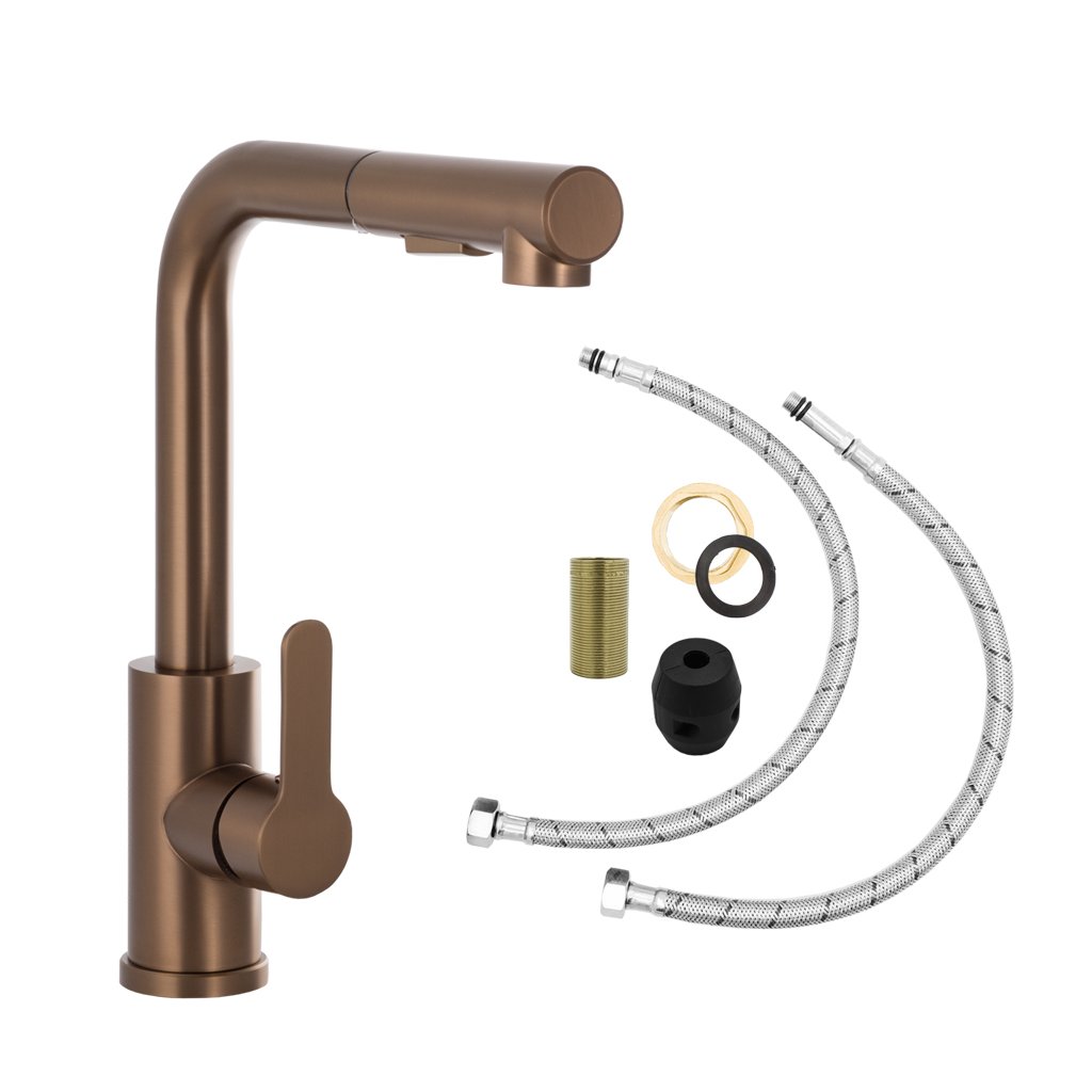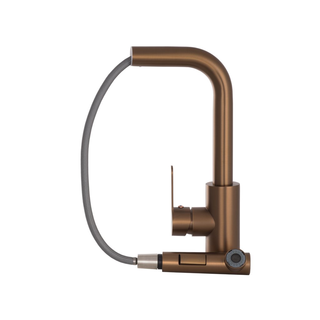 Gamma Side 2, stojanková drezová batéria s výsuvným výtokom h-300, medená matná, GMA-BSE2-BRGD