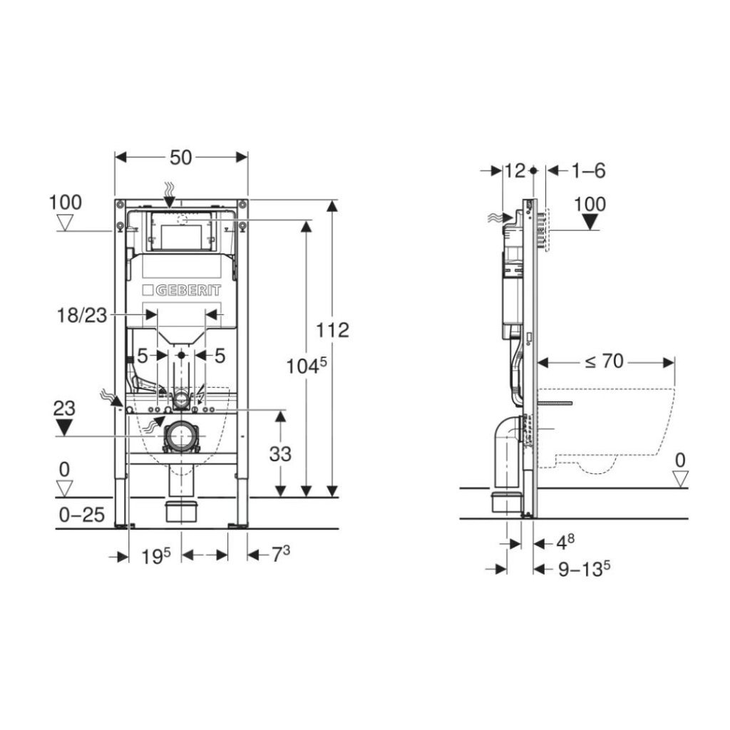 - pre závesné WC s pripojovacími rozmermi podľa EN 33 a presahom do 70 cm