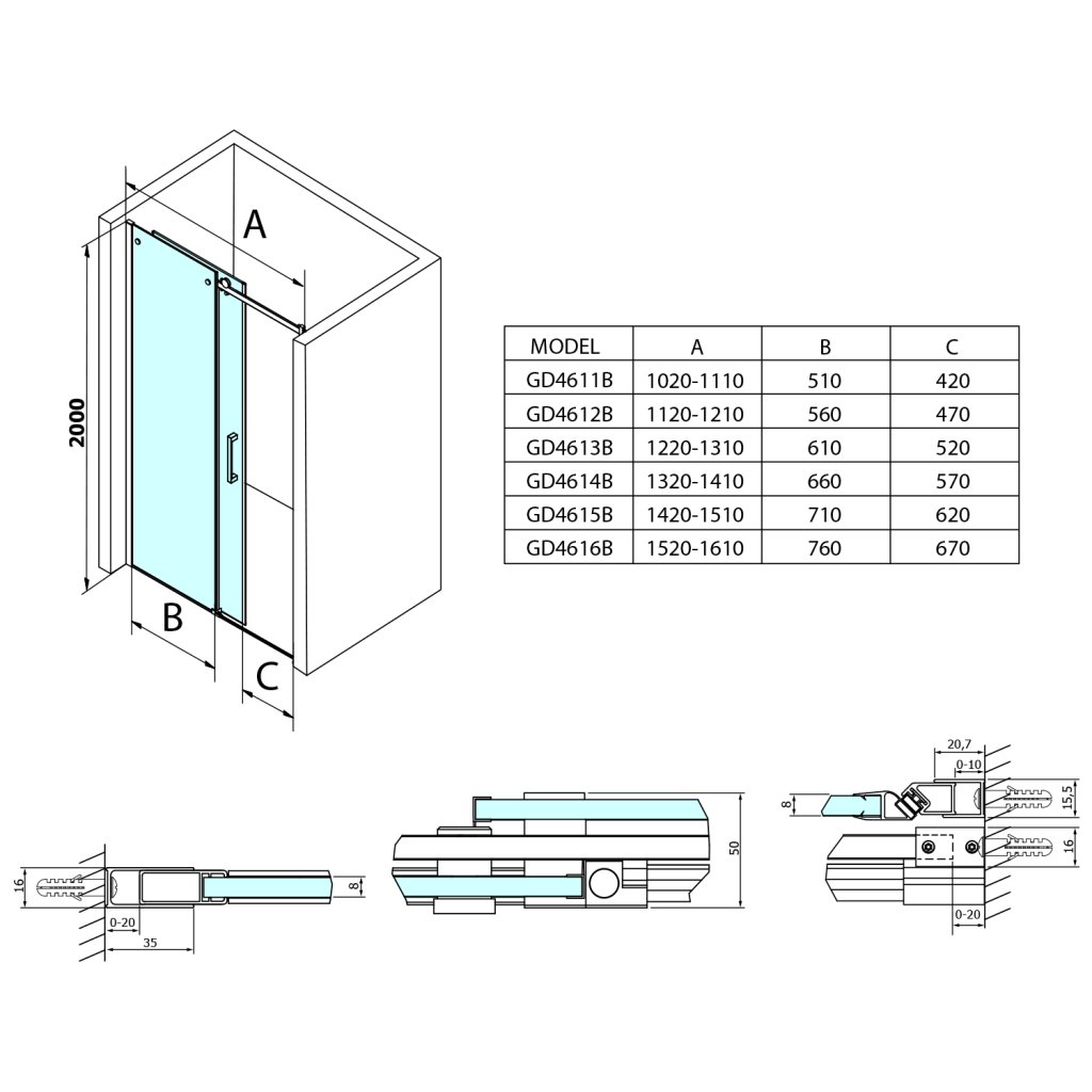 Gelco, DRAGON BLACK sprchové dvere 1600mm, číre sklo, GD4616B