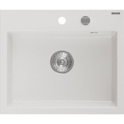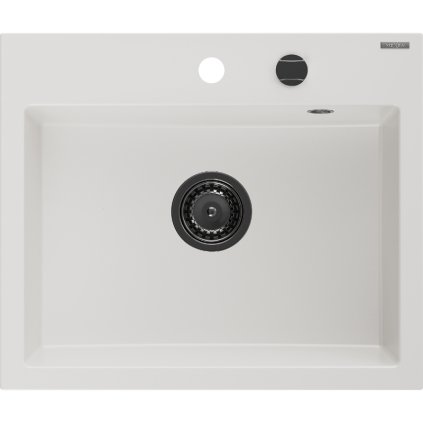 Mexen Leo, 1-komorový granitový drez 900x500x190 mm a drezová batéria Elia, biela, 6501-20-670101-20
