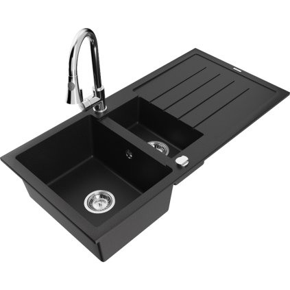 Mexen Omar, 1-komorový granitový drez 800x480x210 mm, čierna škvrnitá, chrómový sifón, 6520801005-76