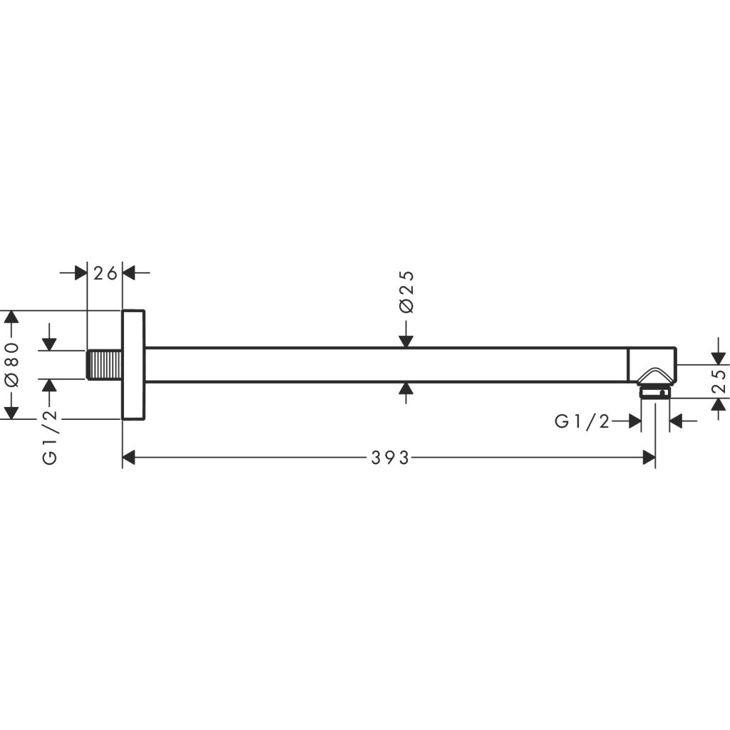 - Sprchové rameno zaisťuje ideálnu vzdialenosť od steny s projekciou 393 mm